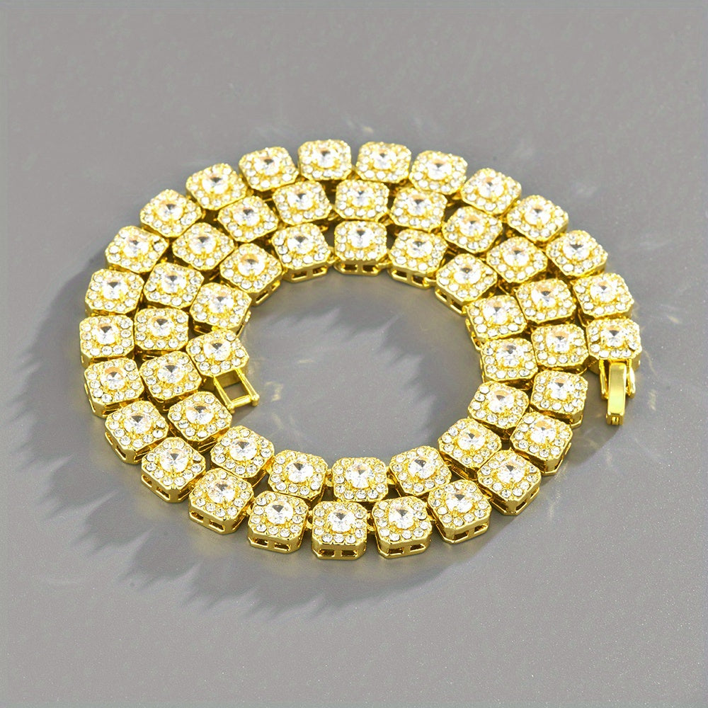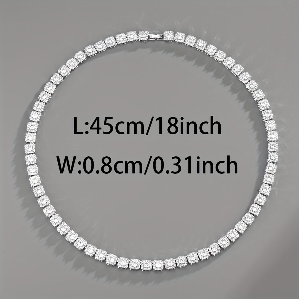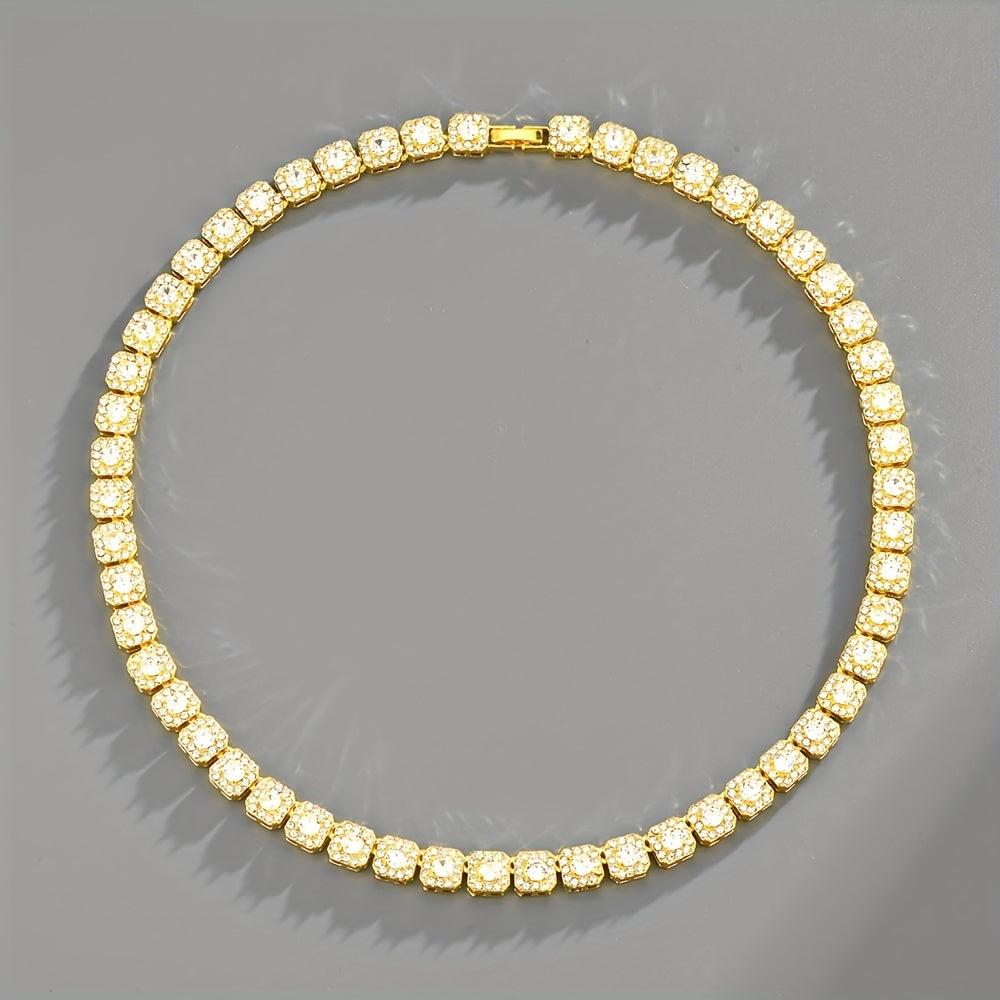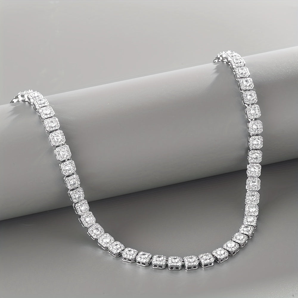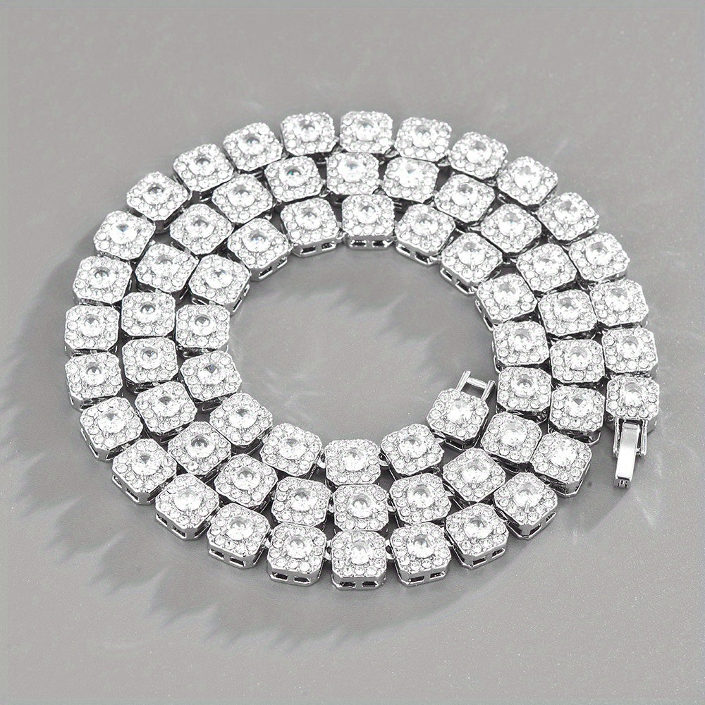 Get a stunning look with this square tennis chain necklace surrounded by micro-paved rhinestones.