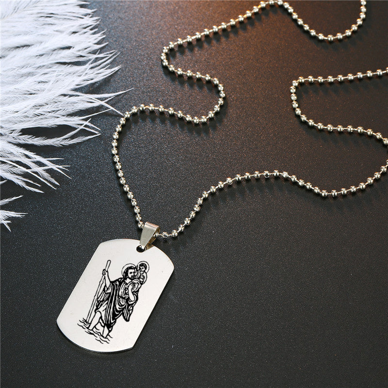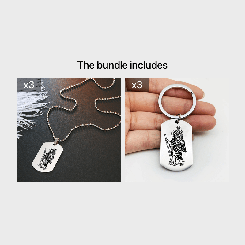 This double-sided dog tag necklace/keychain features St. Christopher and St. Michael to protect travelers. It is a perfect companion for your religious travels.