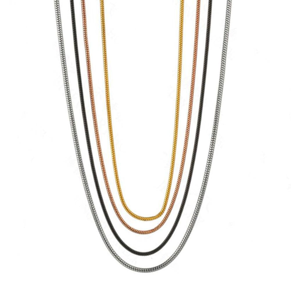 This stainless steel snake chain necklace is a perfect gift for both men and women. It has a width of 1.2mm, making it suitable for any pendant. Available in various lengths to suit your style.