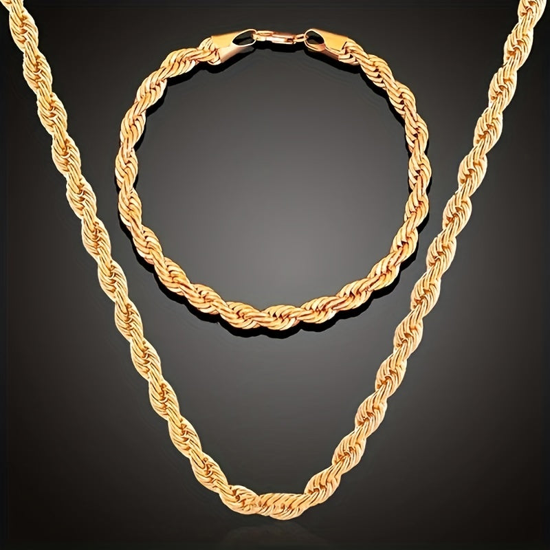 This 2-piece set includes a necklace and bracelet made of stainless steel with 18k plating. The braid design adds an elegant touch to your look, perfect for daily wear or special occasions.