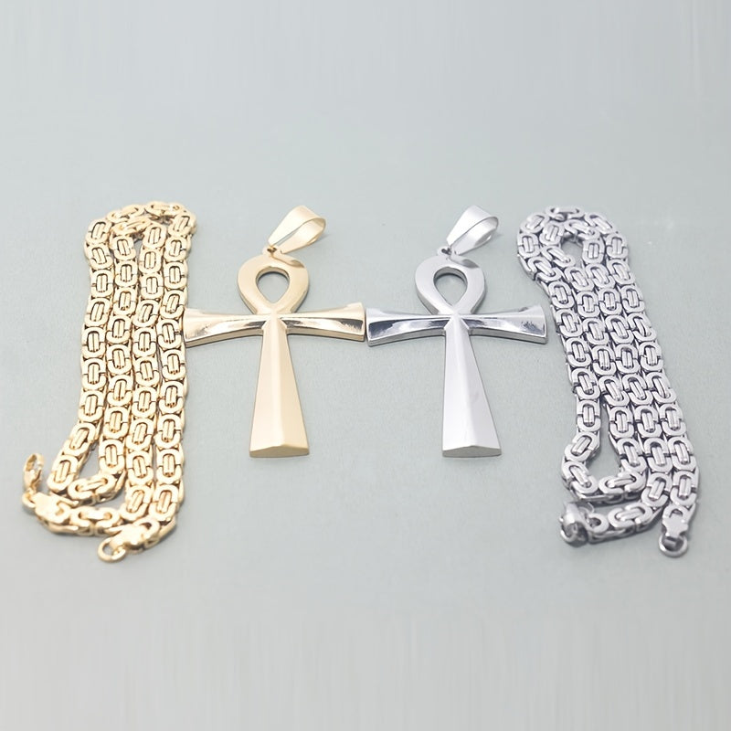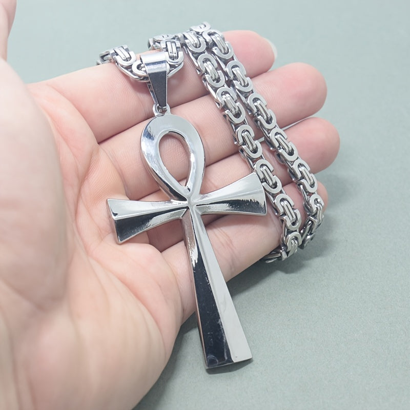 This stainless steel Ankh cross pendant necklace symbolizes the Cross of Life and offers protection against evil spirits. It features a unique design inspired by the ancient Egyptian culture.