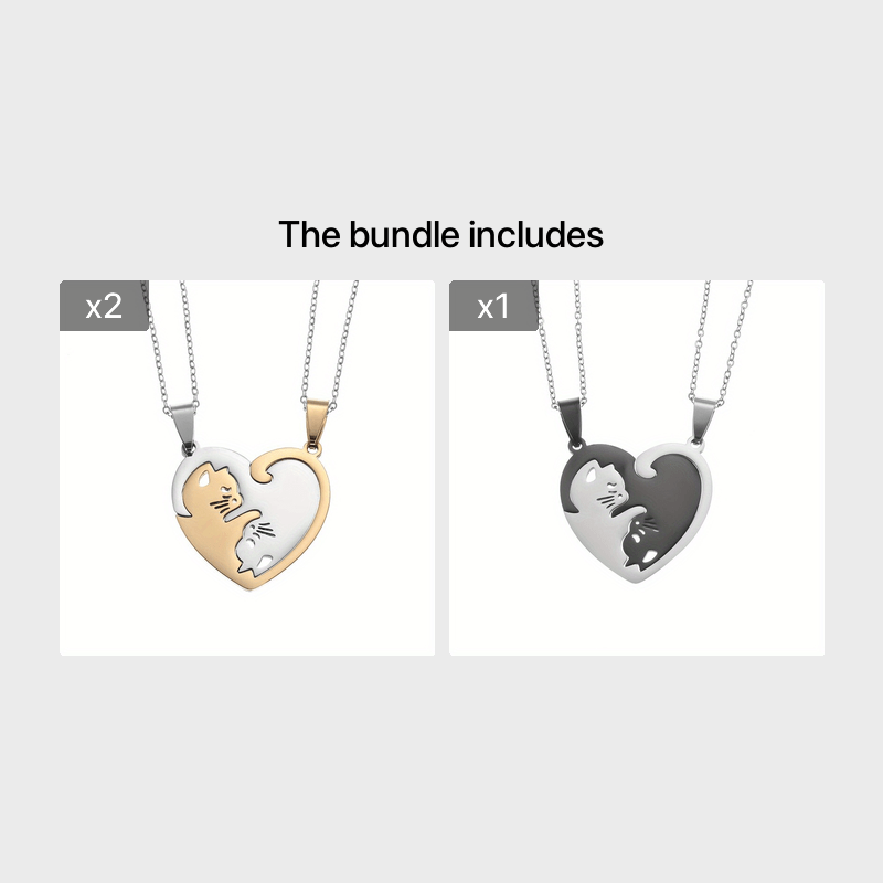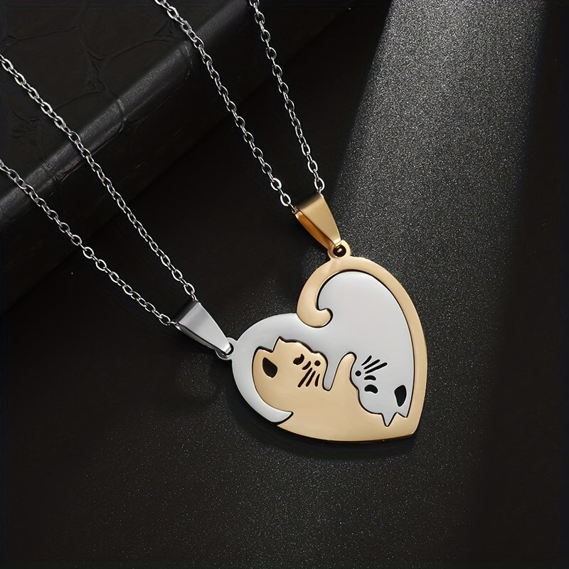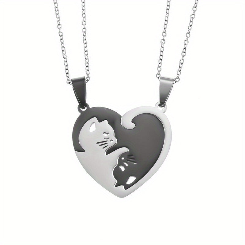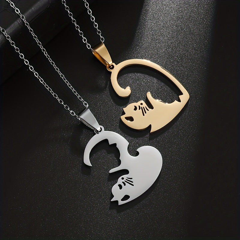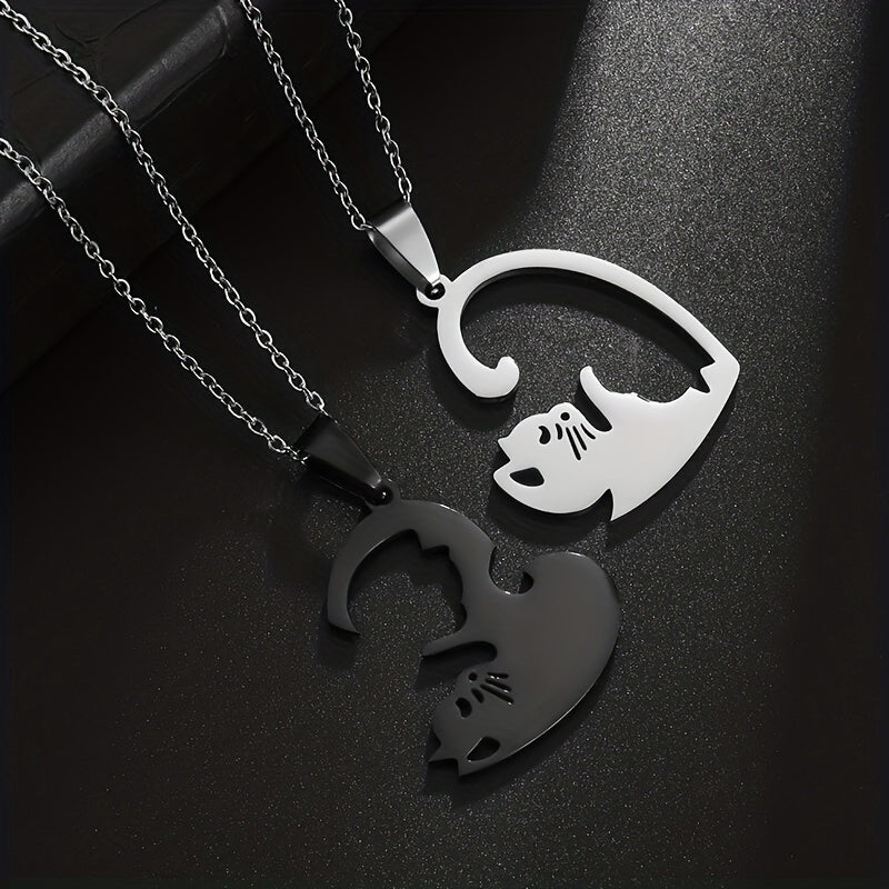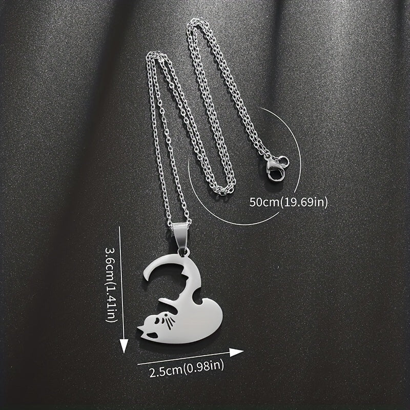This stainless steel pendant necklace set features a cute cat design, perfect for men and women. Great as a friendship gift.