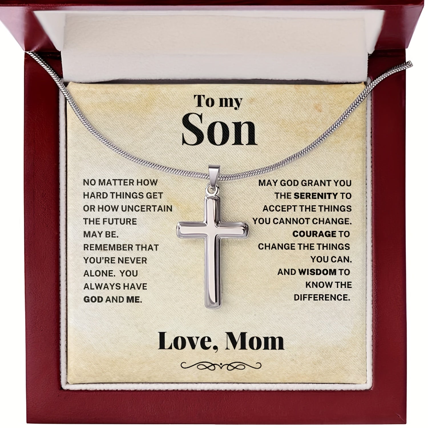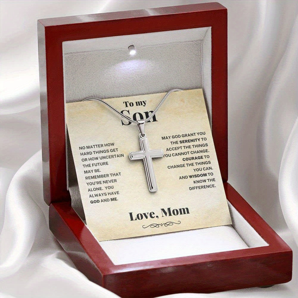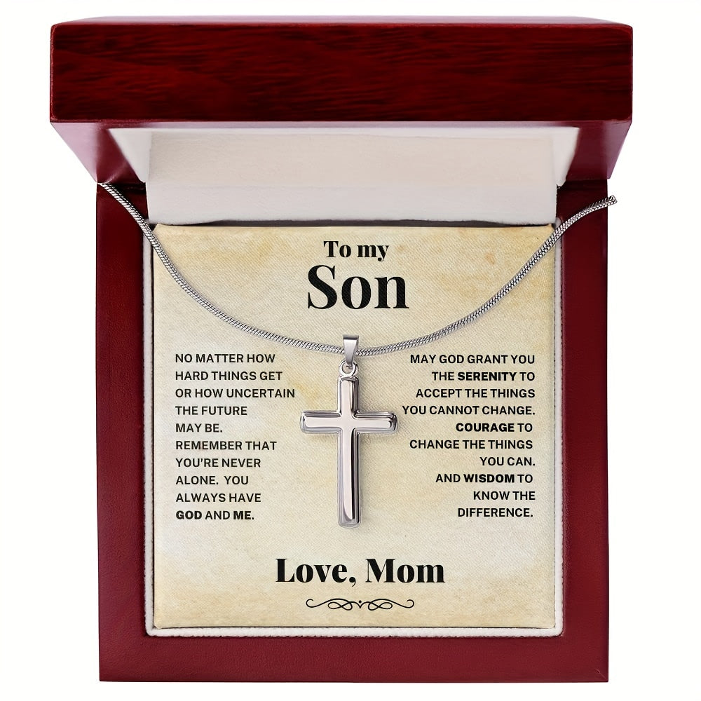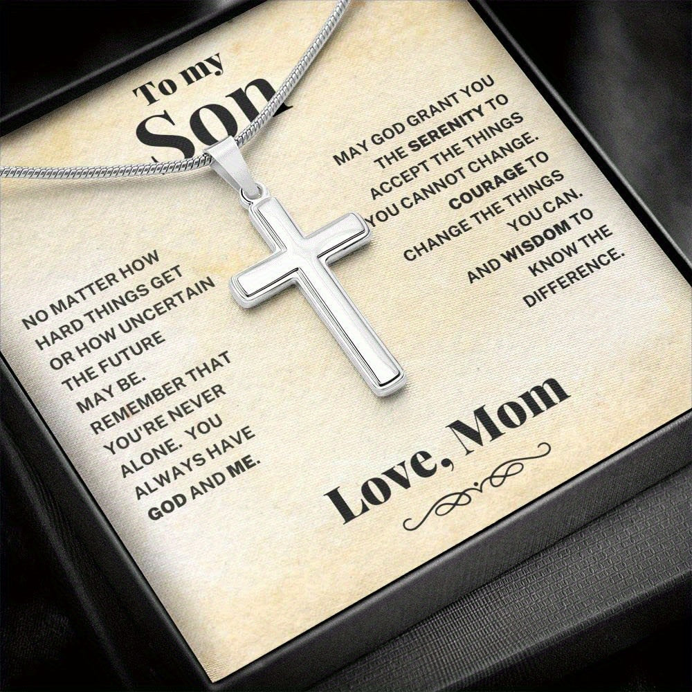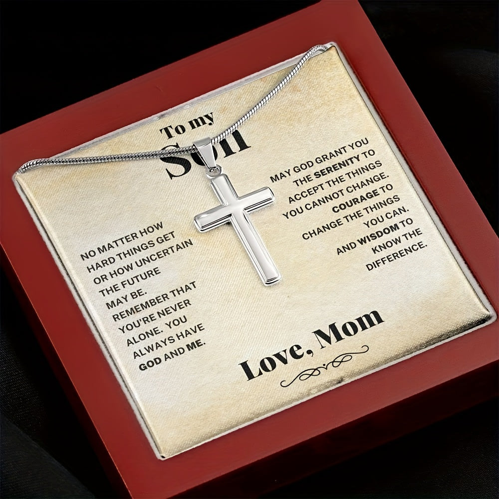 Surprise your son with this stylish cross necklace made of stainless steel. It's a perfect gift for birthdays, graduations, or any special occasion.