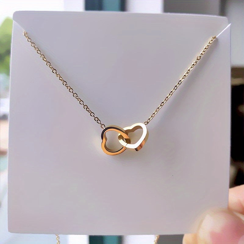 This attractive necklace features a double ring love pendant crafted from stainless steel with zirconia accents. Perfect for men who appreciate quality jewelry.