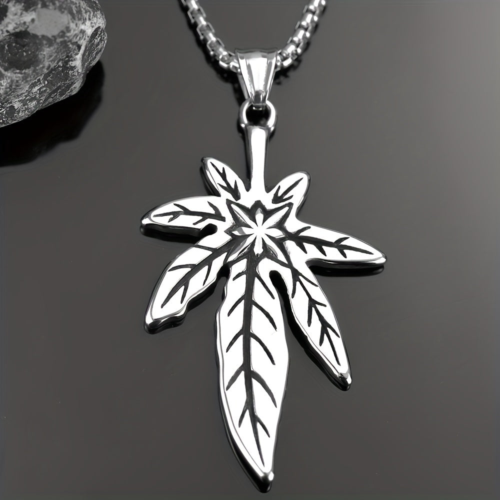 Elevate your style with this stainless steel pendant necklace featuring a maple leaf design. Perfect for adding a touch of retro hip hop flair to your party or nightclub look.