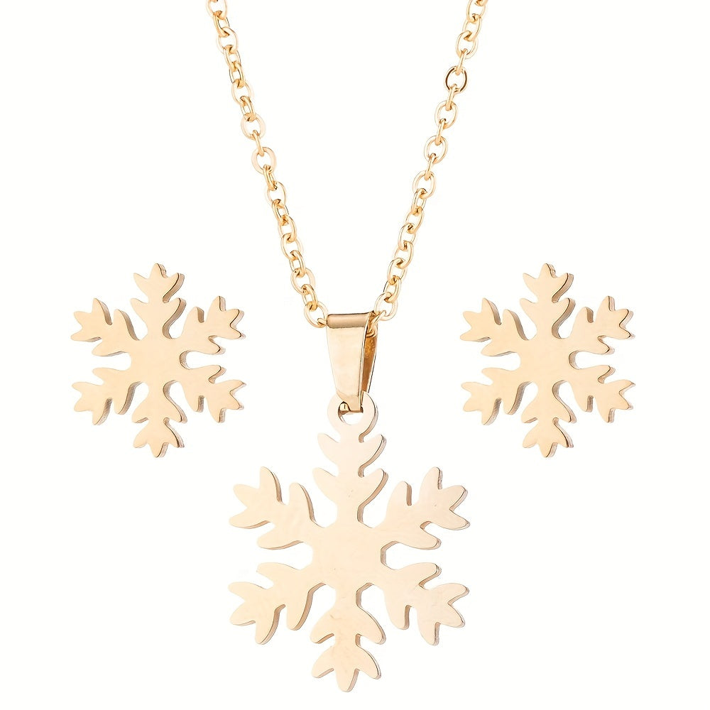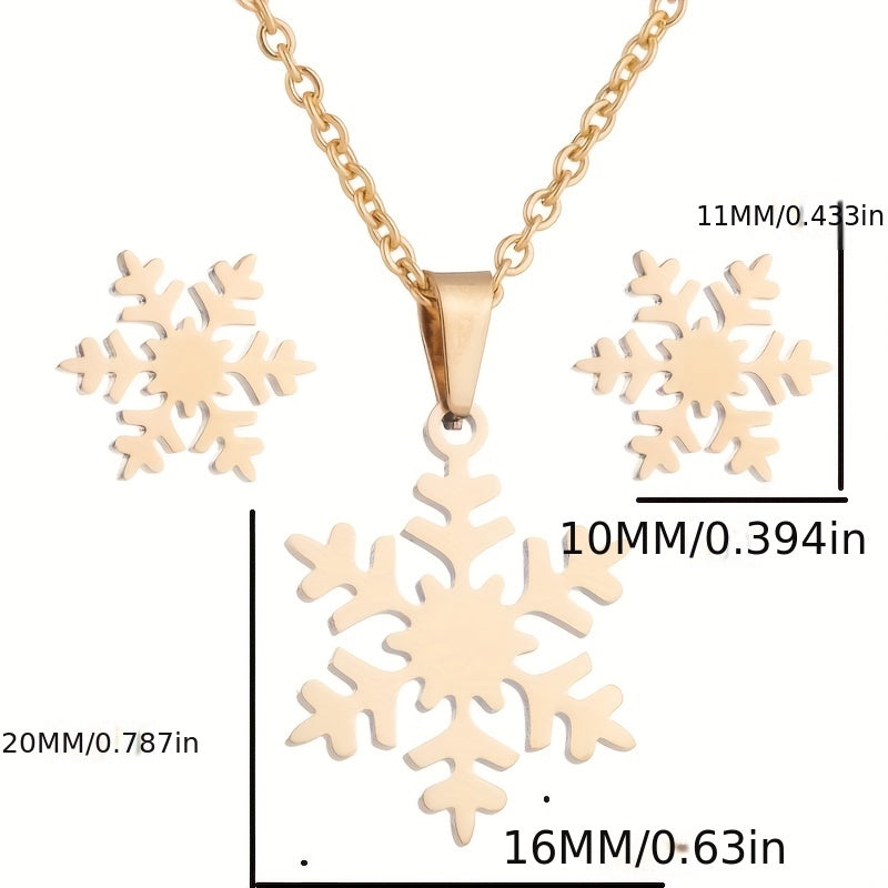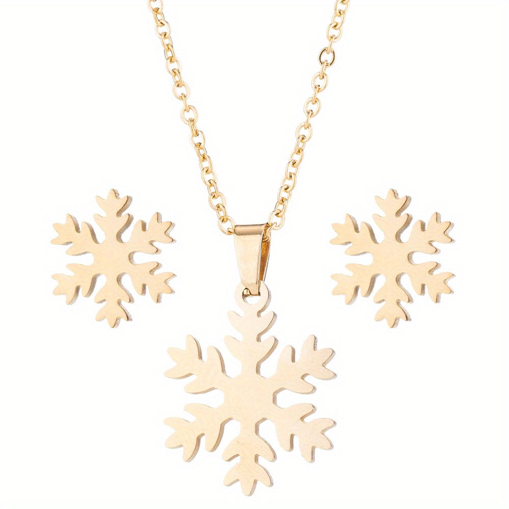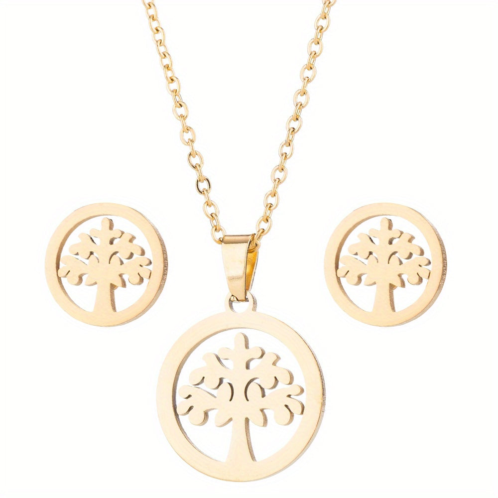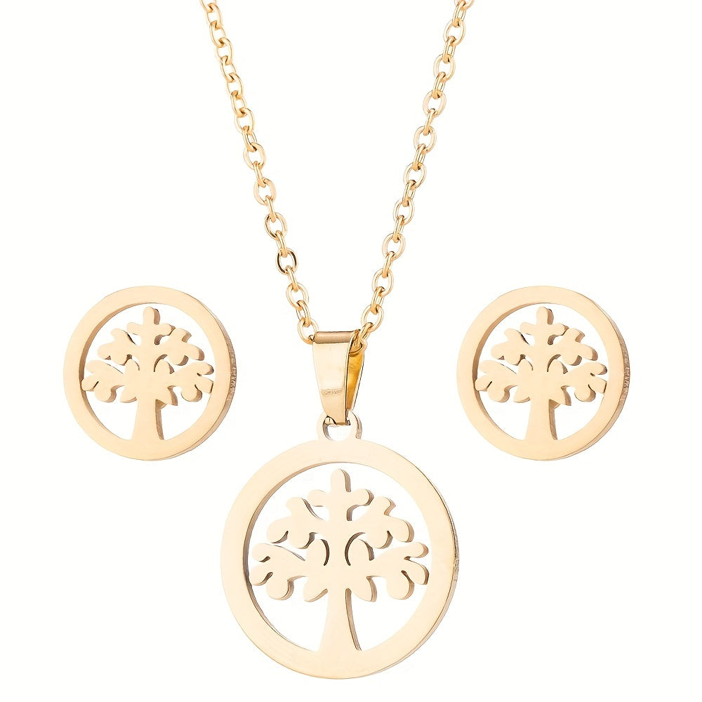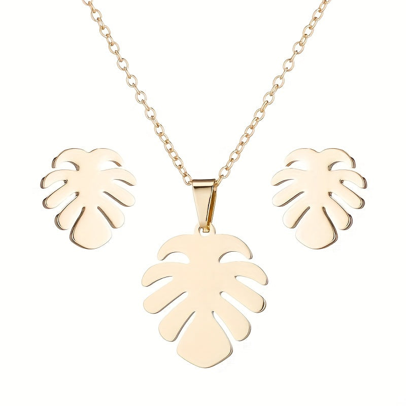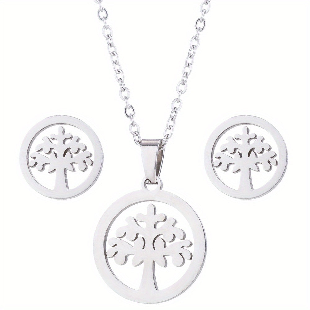 Adorn yourself with this elegant stainless steel jewelry set featuring a monstera pendant necklace, life tree rose charm bracelet, and Christmas snow ear studs for men.