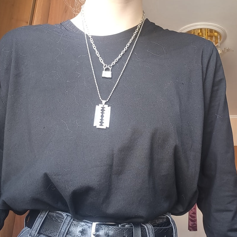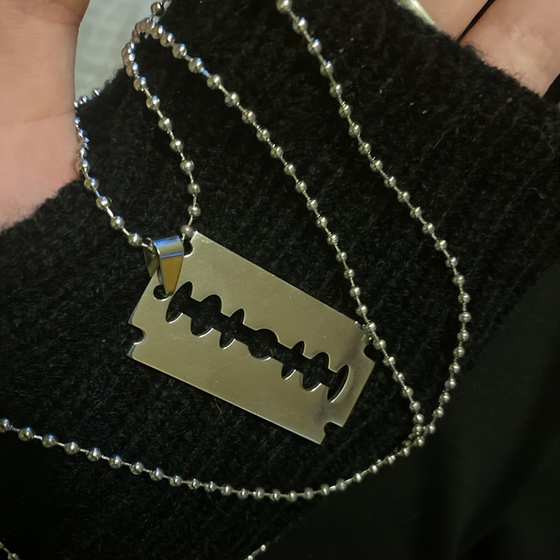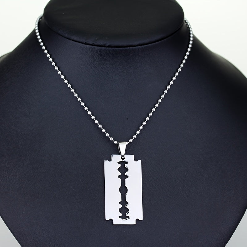 Add a touch of hip hop style to your outfit with these funky stainless steel razor blades shave pendant necklaces. Perfect for men's jewelry lovers.
