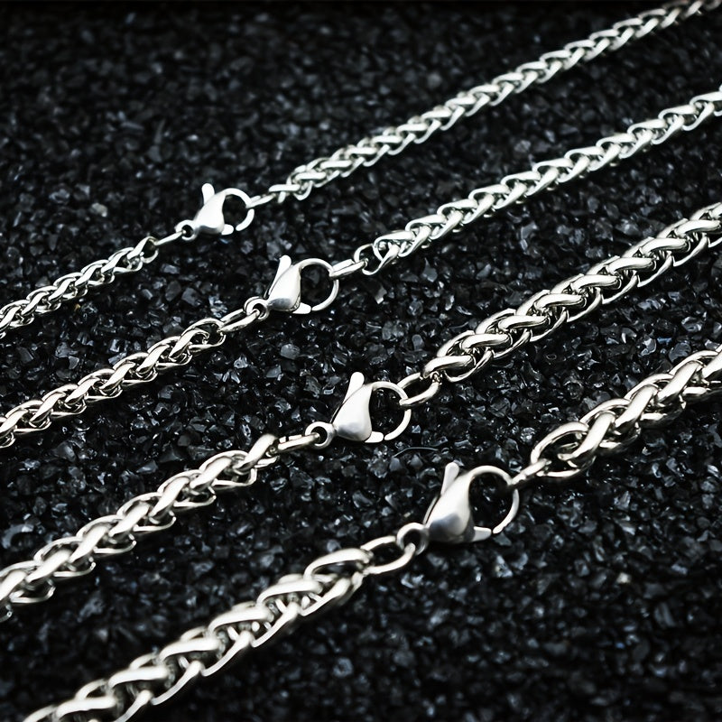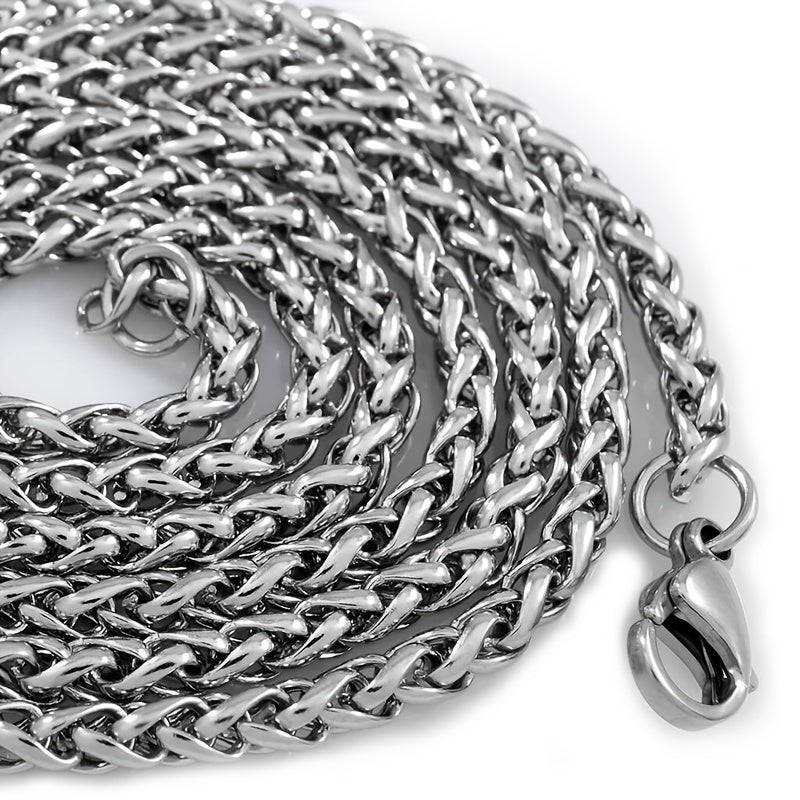 This stainless steel necklace features a twist rope design that adds a stylish touch to any outfit.