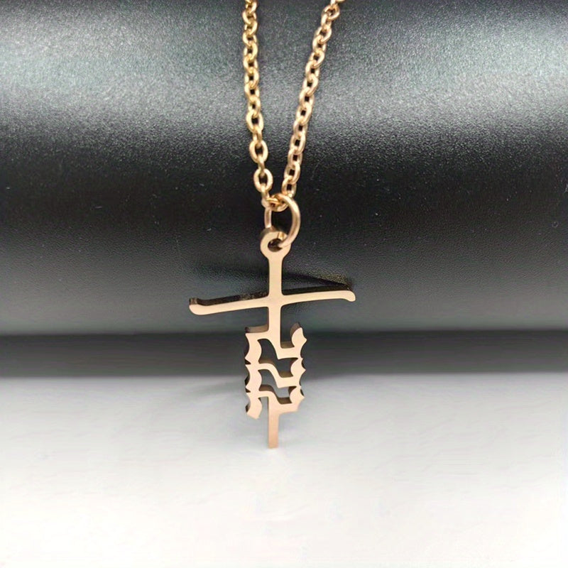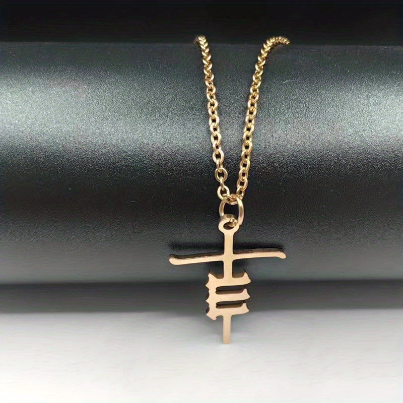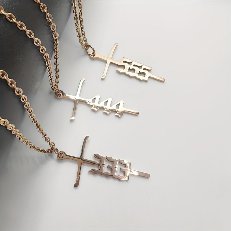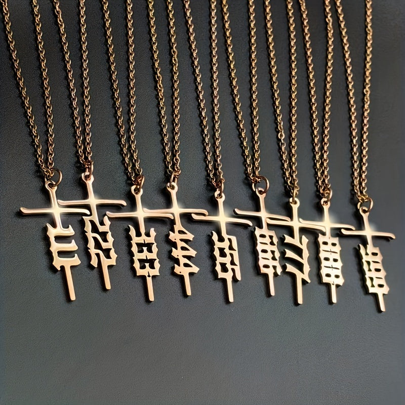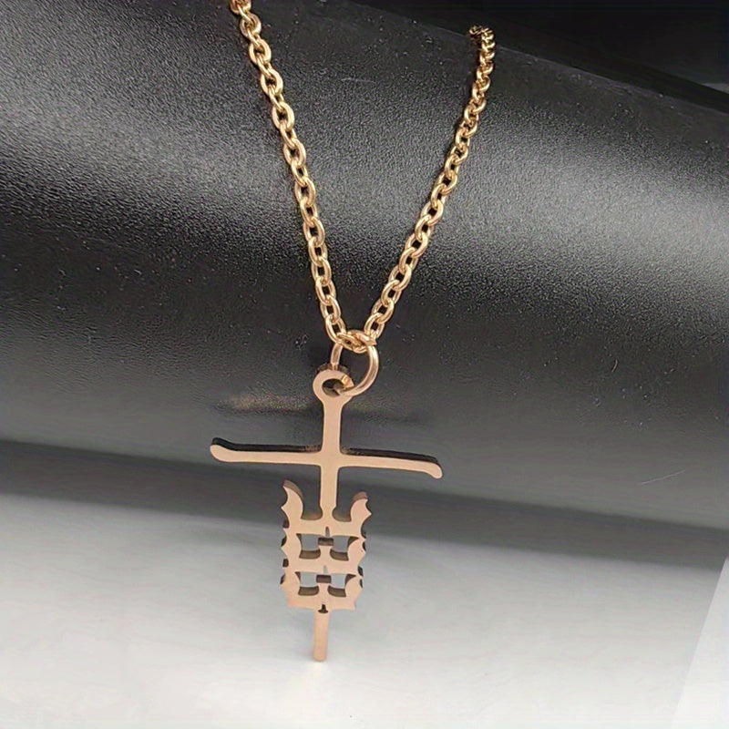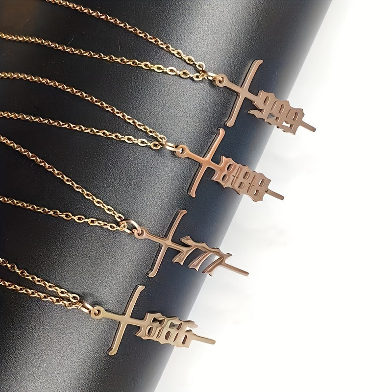 Vintage style pendant necklace featuring a stainless steel rose gold plated cross with unique number design. A funky and stylish gift for men.