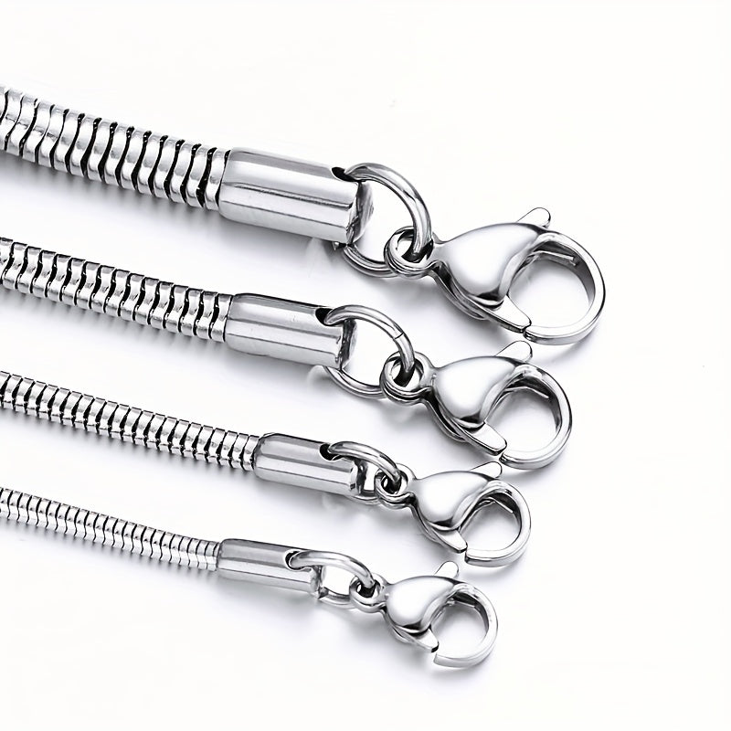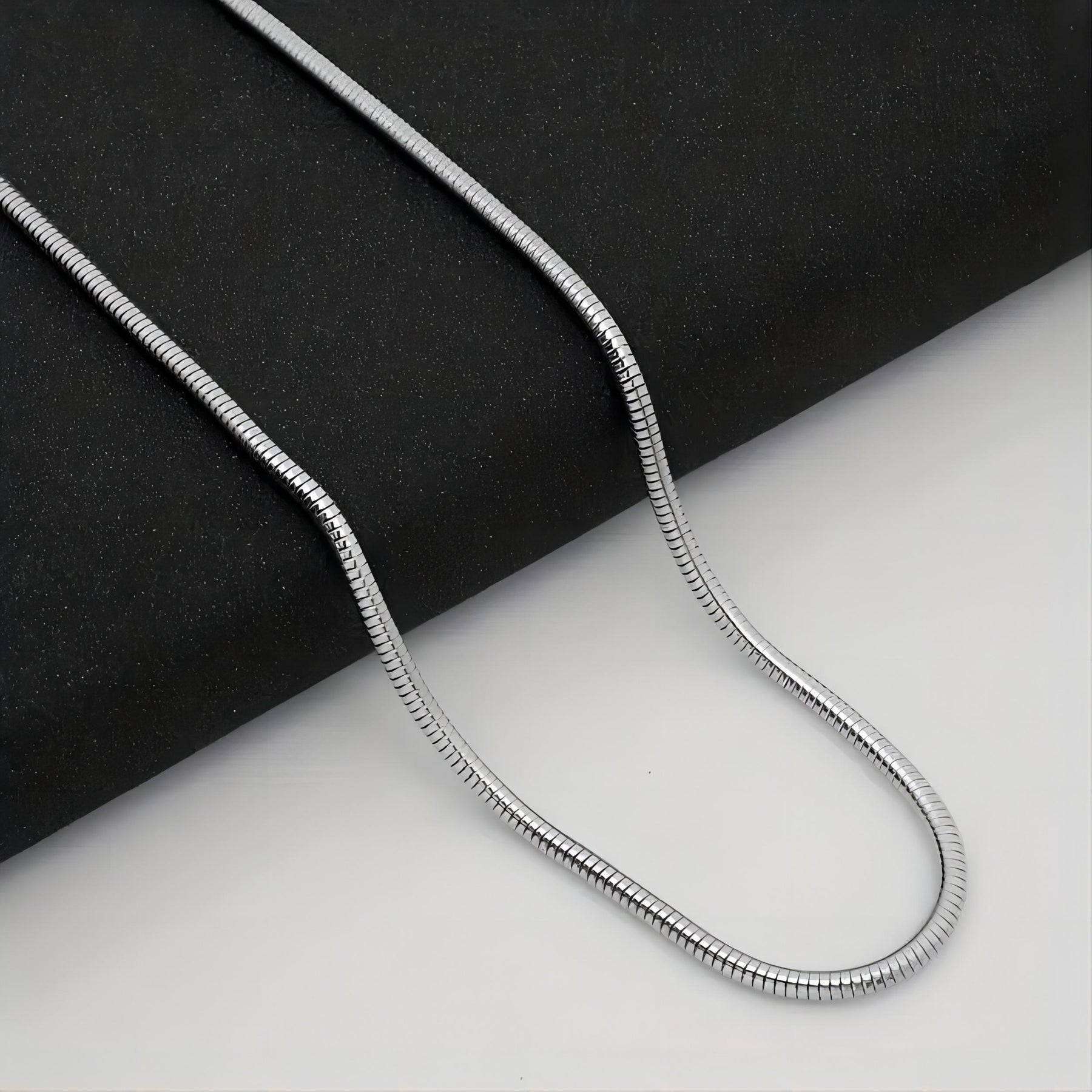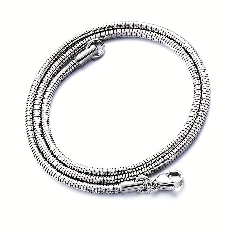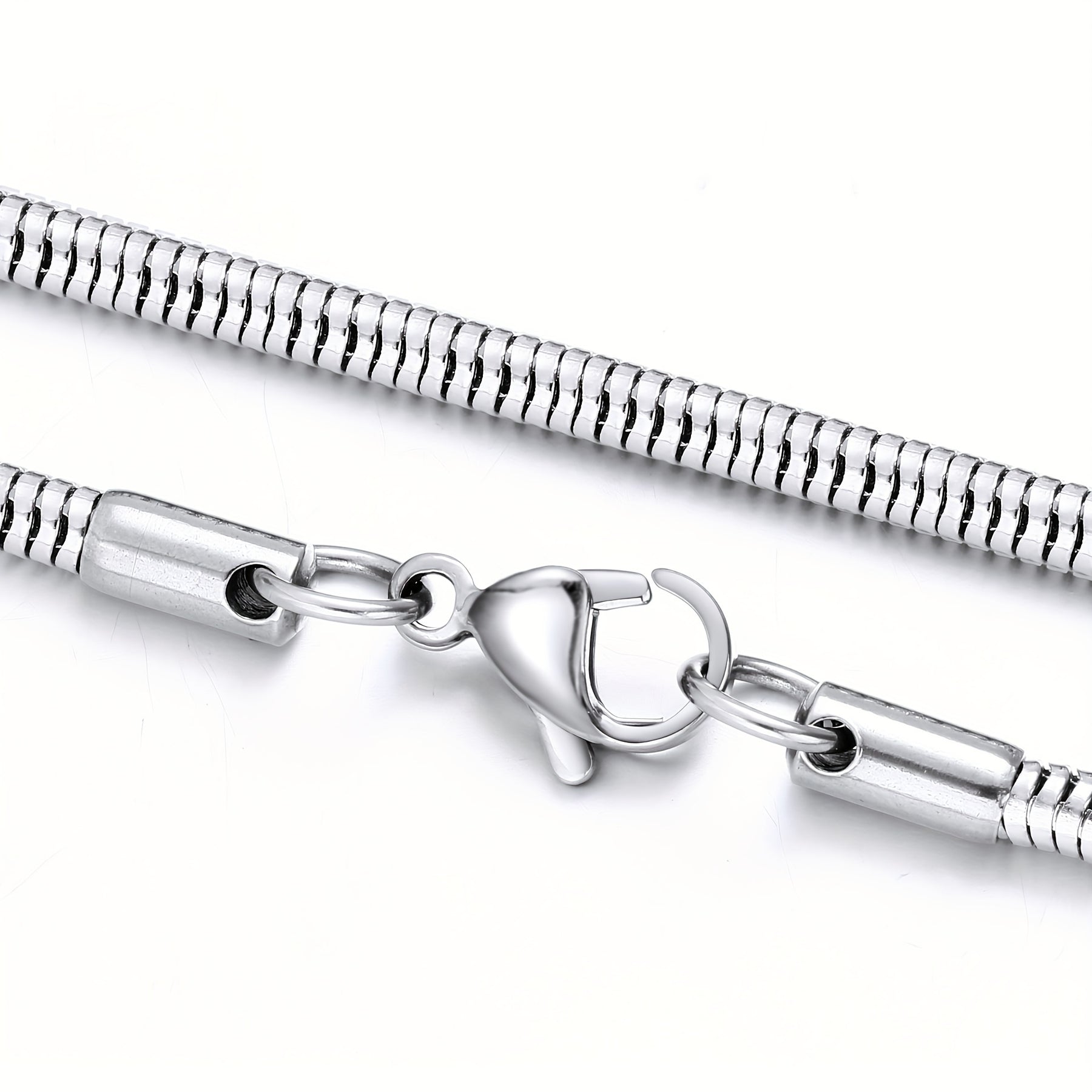 This stainless steel round snake bone necklace is a stylish accessory that adds a touch of edginess to your look.