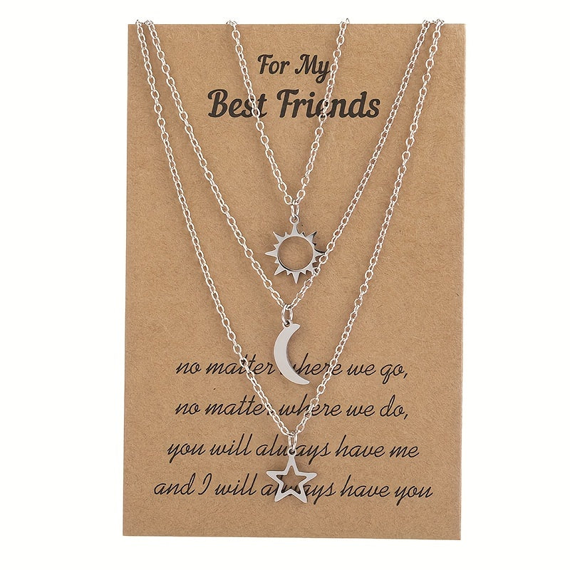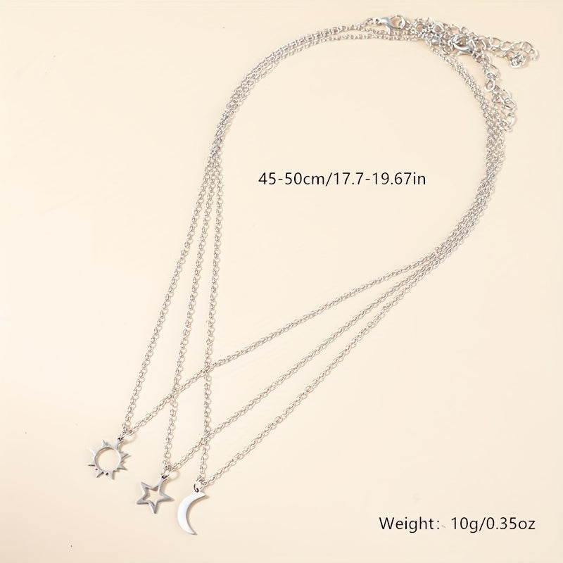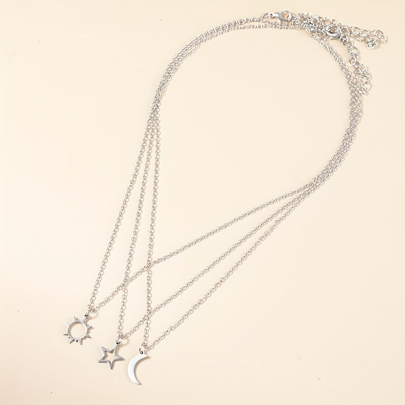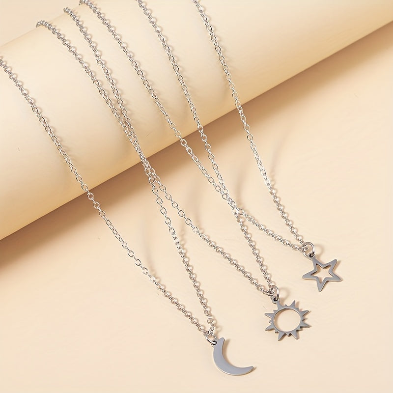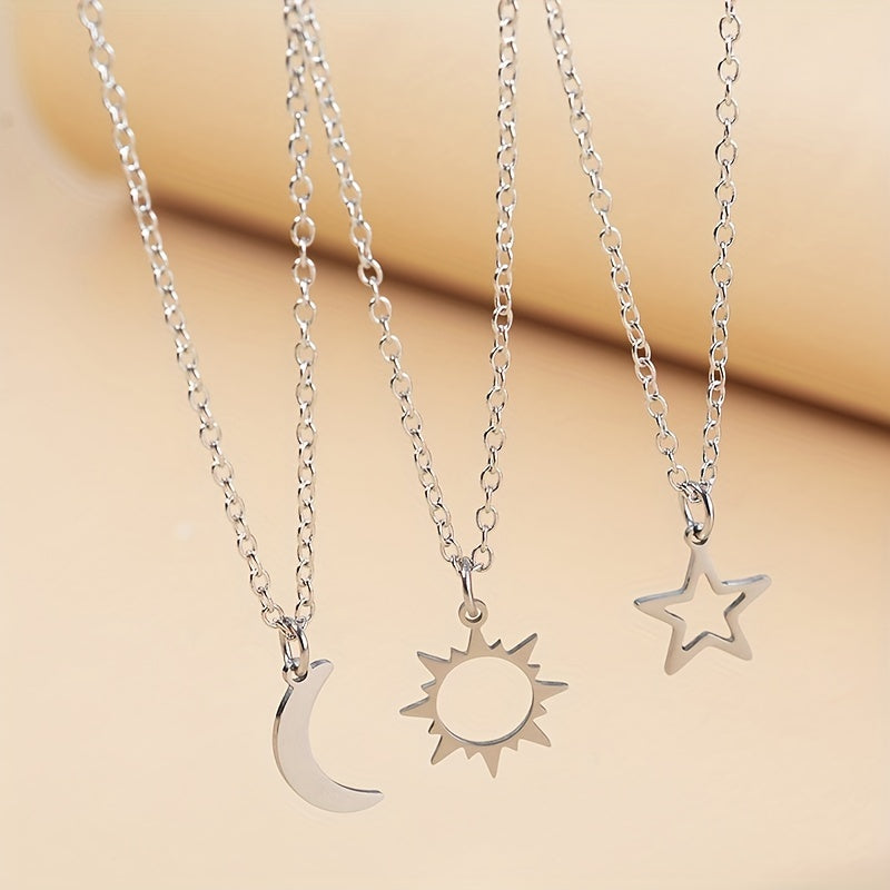 Stainless Steel Sun Moon Star Necklace 3pcs Friendship Good Necklace