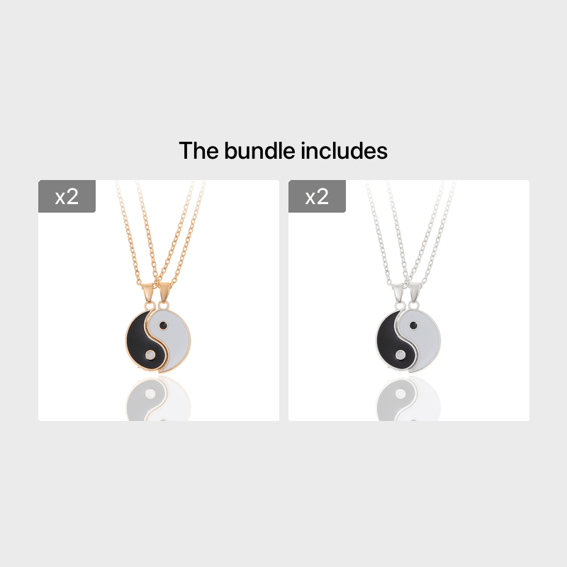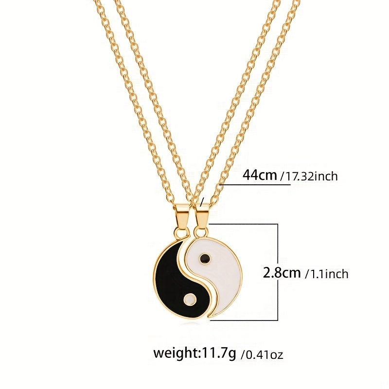 This matching set of 2 stainless steel Yin Yang pendant puzzle piece necklaces is a perfect gift for couples or friends to show their connection. Each piece fits together to create a whole symbolizing unity and balance.
