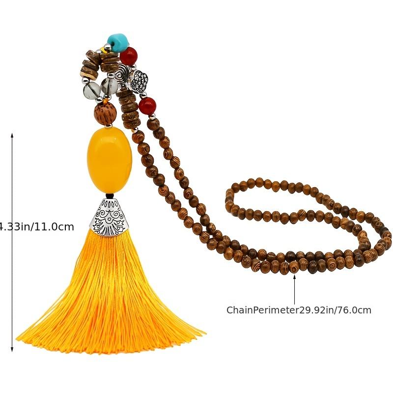 Elegant and unique vintage style necklace with stone tassel pendant. Features ethnic beaded design for women who appreciate artisan craftsmanship.