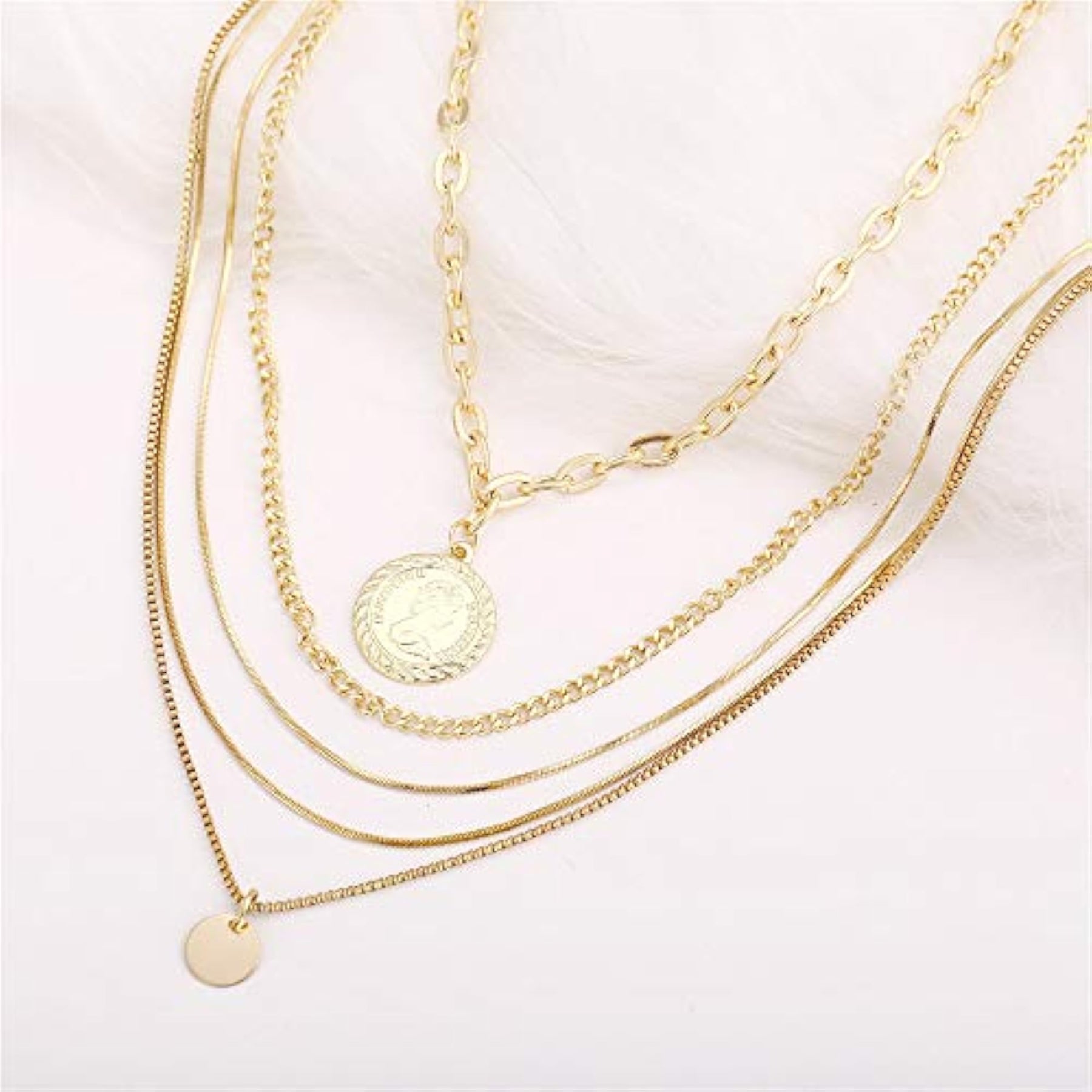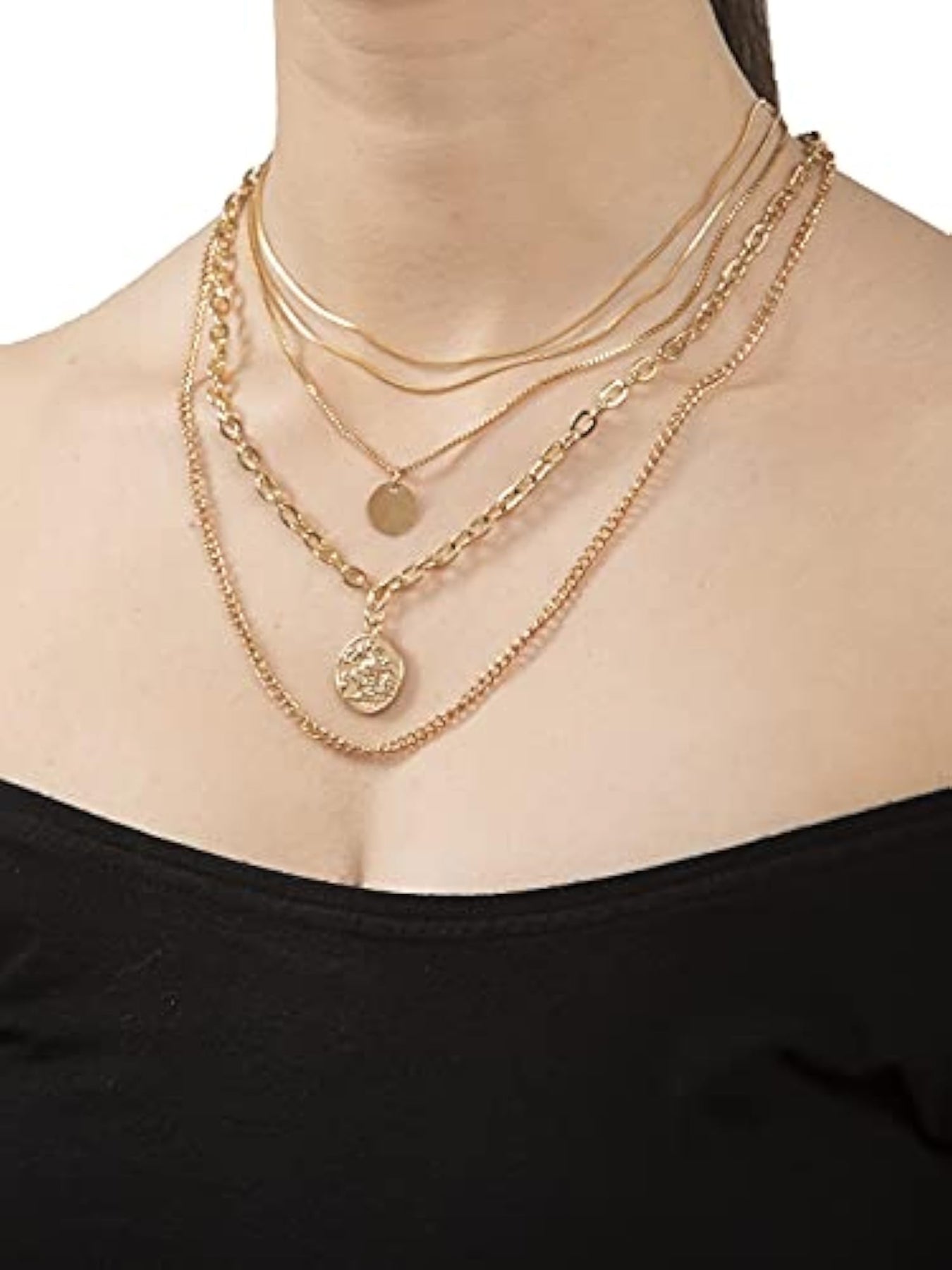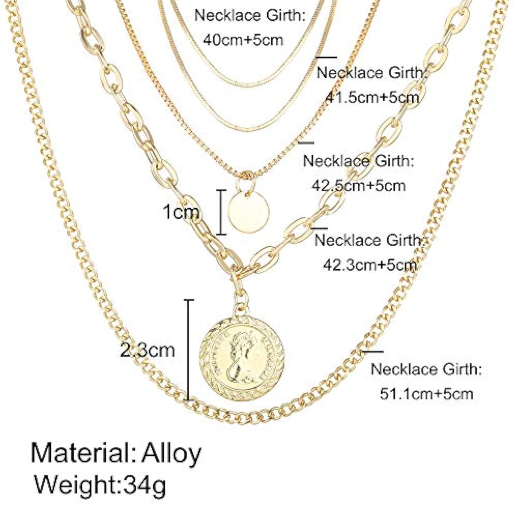 Elevate your look with this trendy multilayer metal chain pendant necklace in gold. Perfect for adding a touch of style to any outfit.