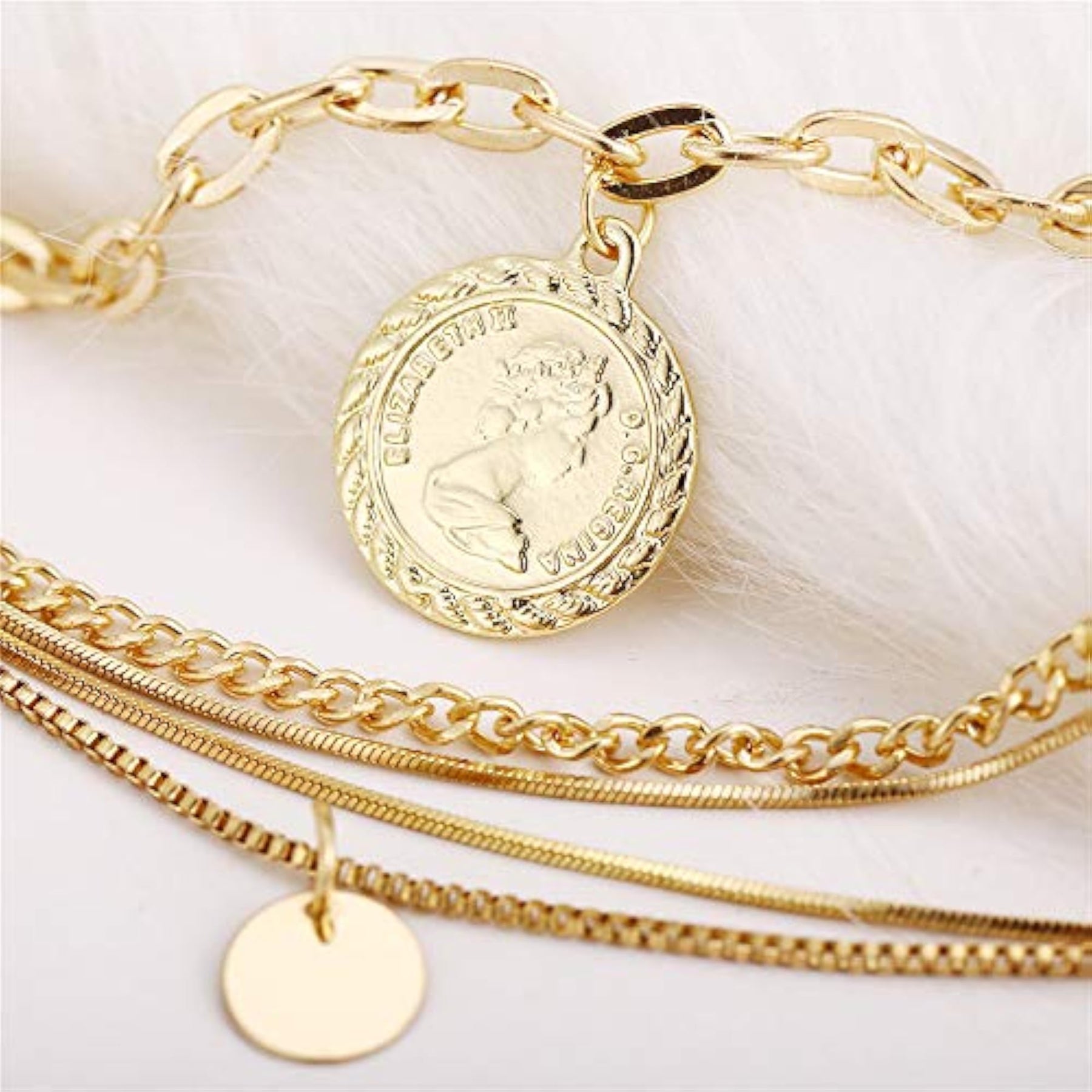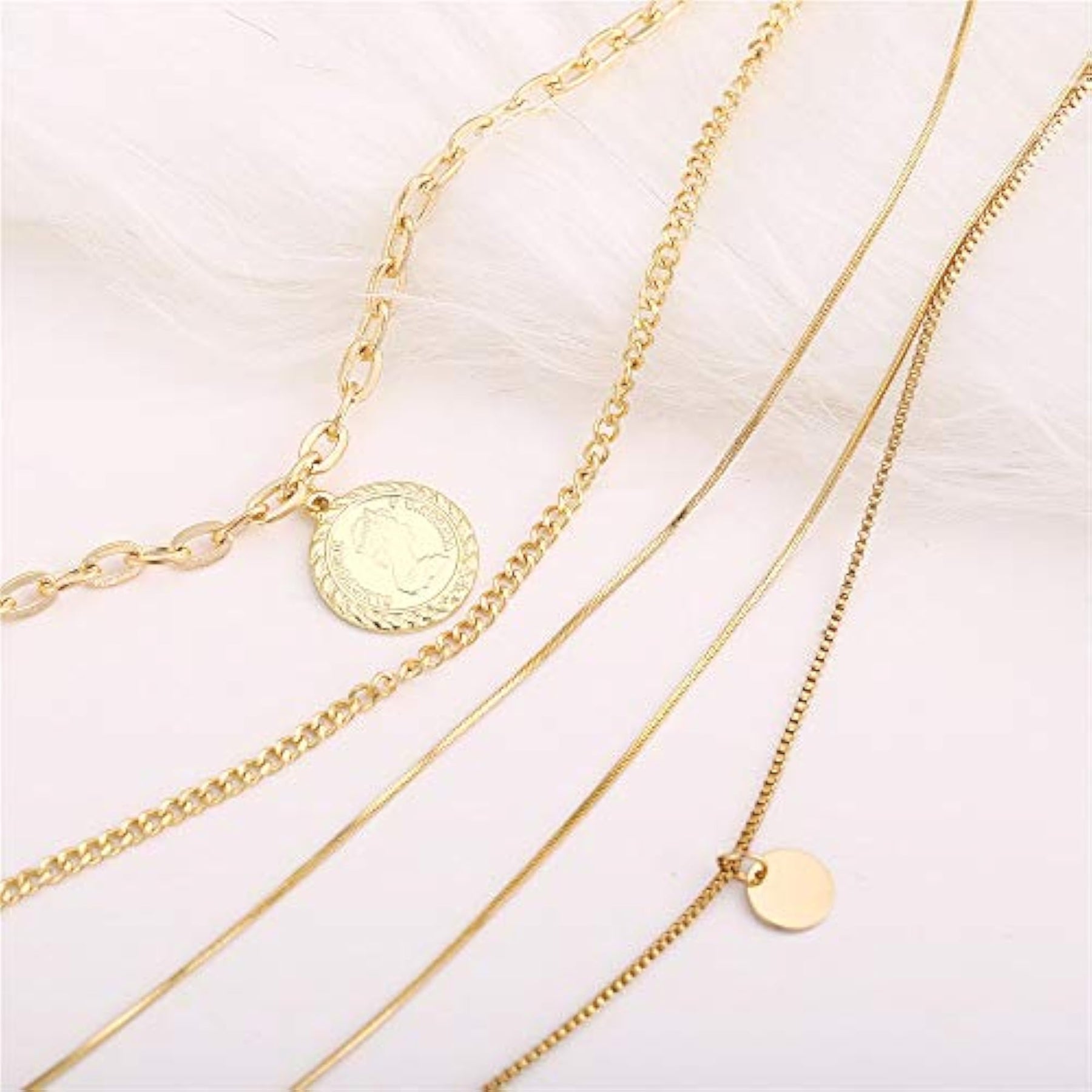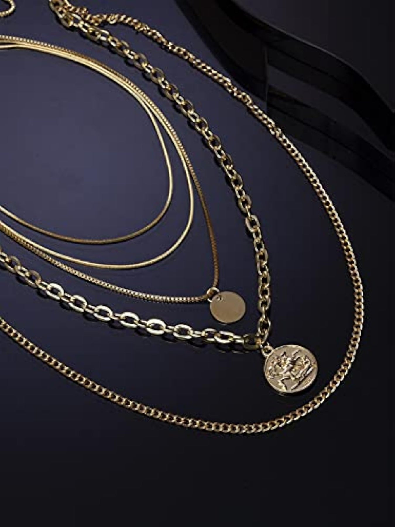 Elevate your look with this trendy multilayer metal chain pendant necklace in gold. Perfect for adding a touch of style to any outfit.