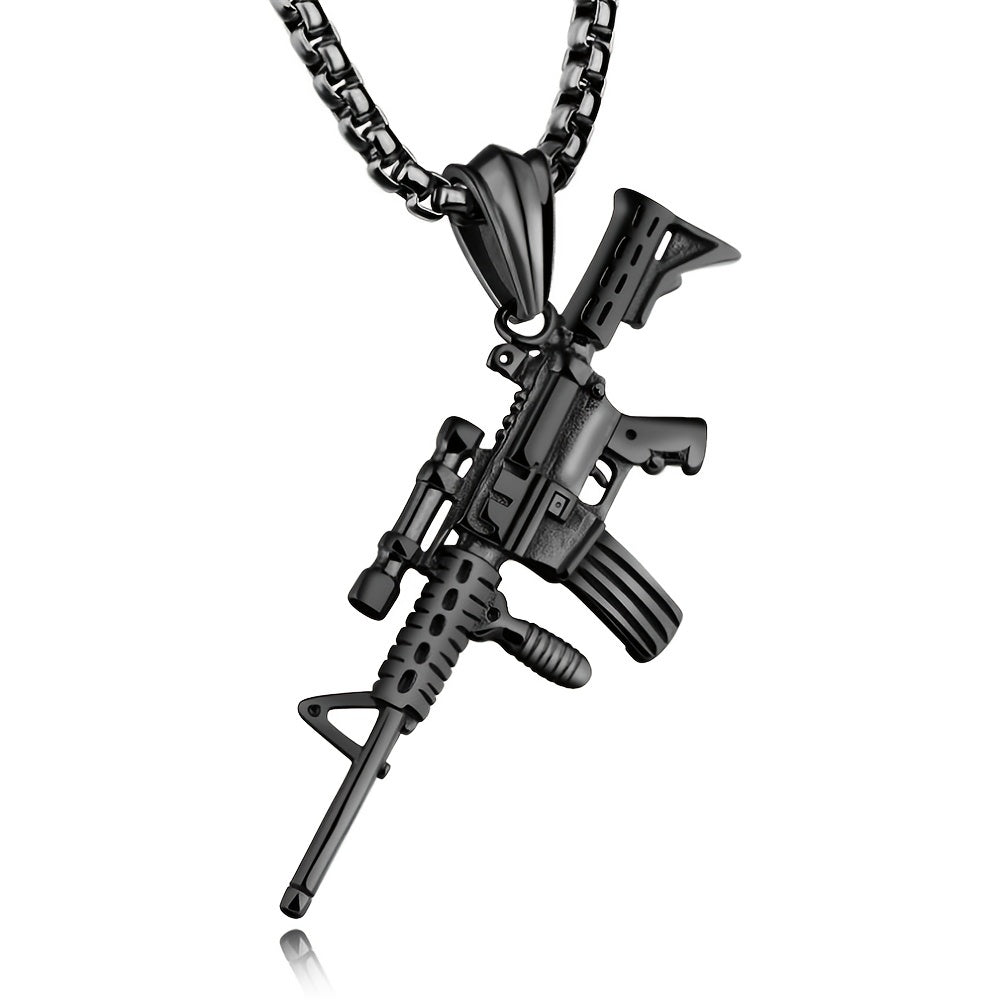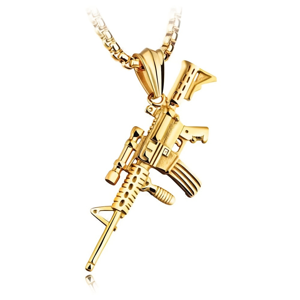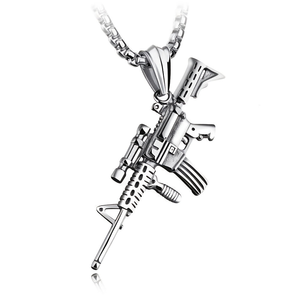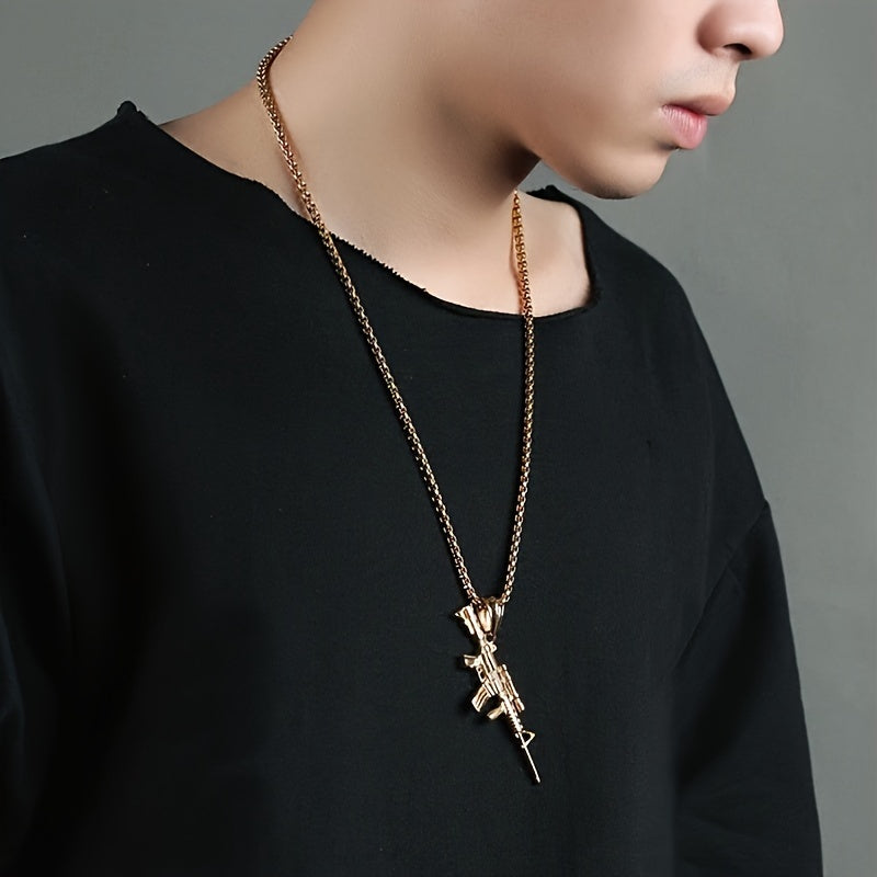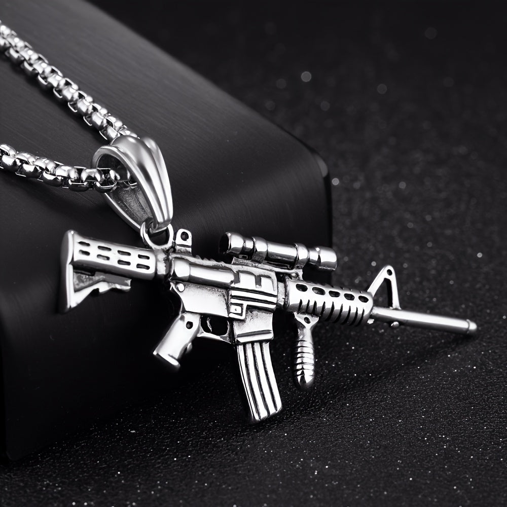 This stylish submachine gun pendant necklace is a great accessory for men, featuring a stainless steel chain. Perfect gift for any occasion.
