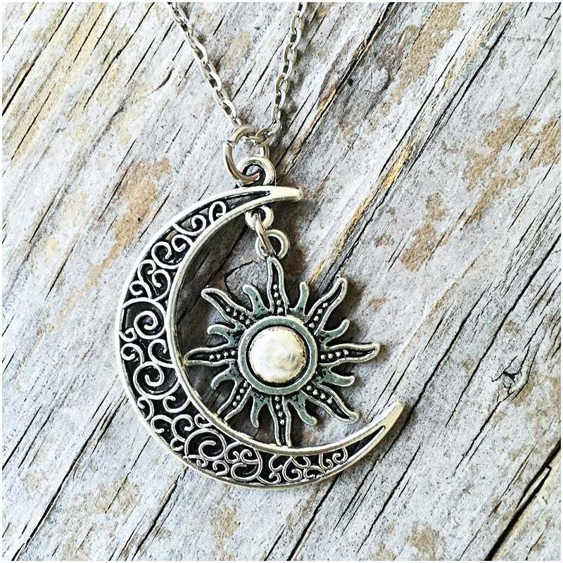 This beautiful sun and moon necklace is a perfect addition to your celestial jewelry collection. It features a dainty design that is perfect for layering with other necklaces.