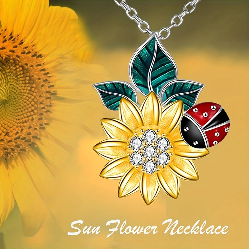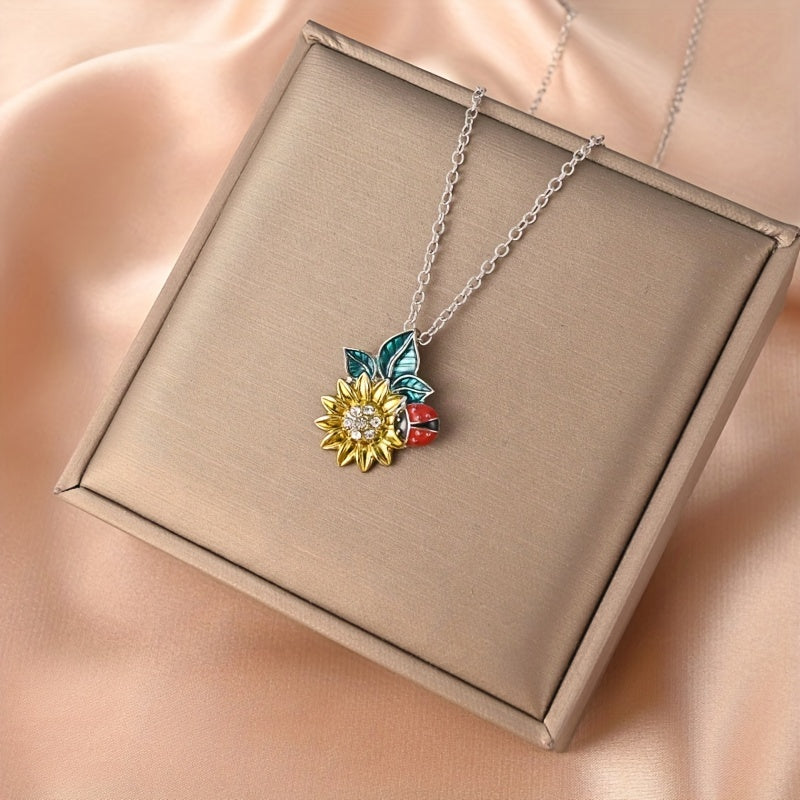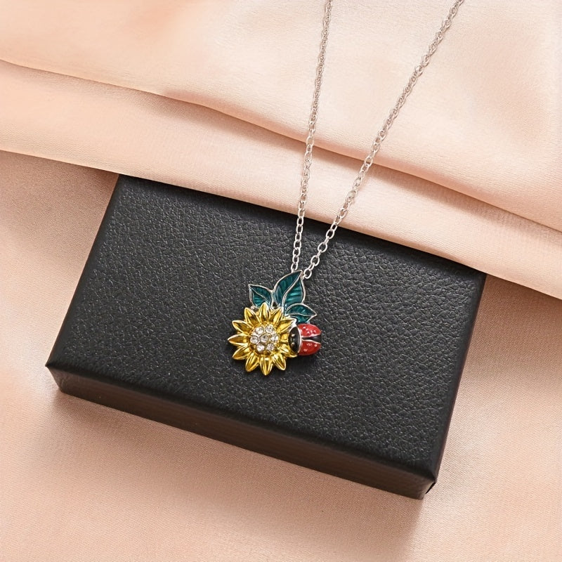Sunflower Necklace with Faux Diamond Inlay Gift