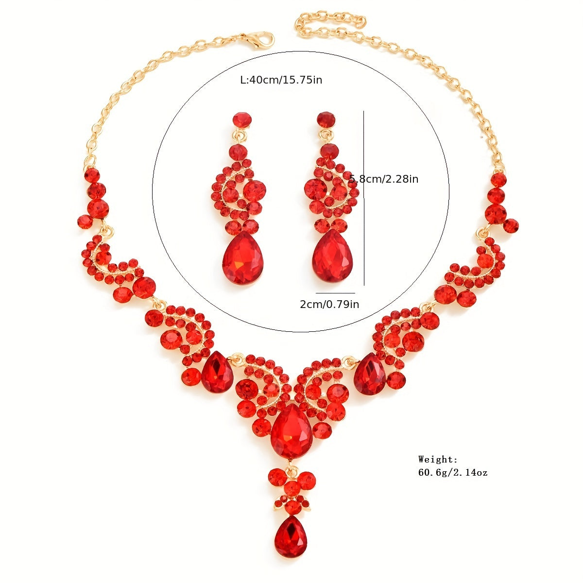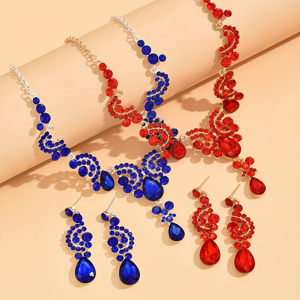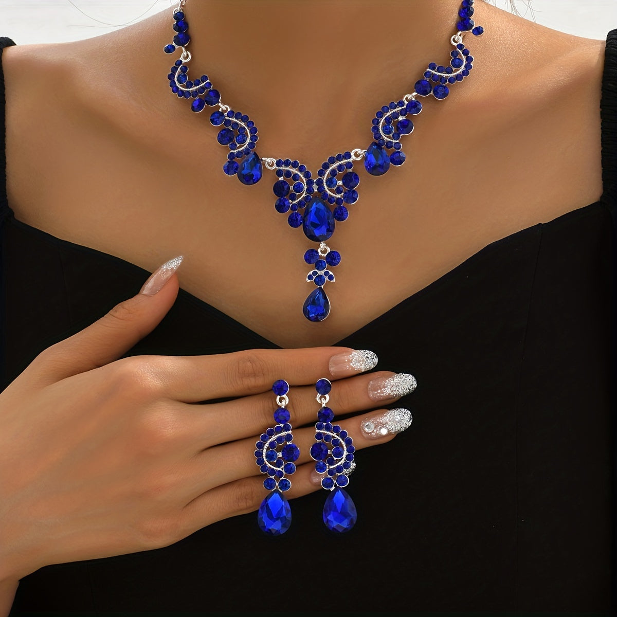 Elevate your style with this stunning jewelry set featuring a pendant necklace and dangle earrings adorned with inlaid synthetic gems.