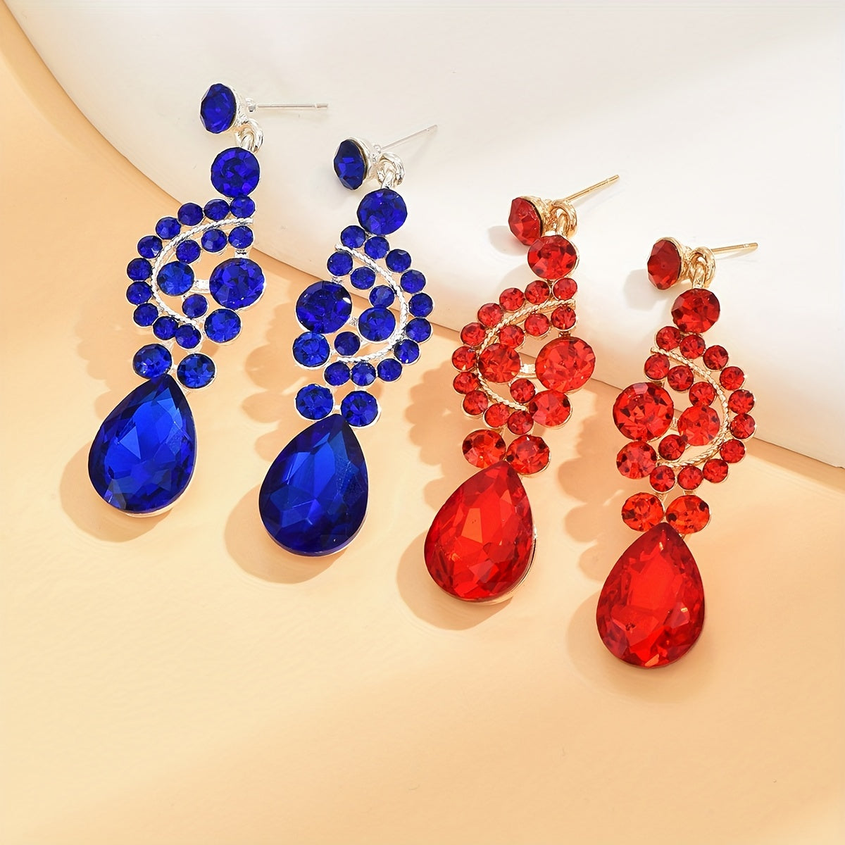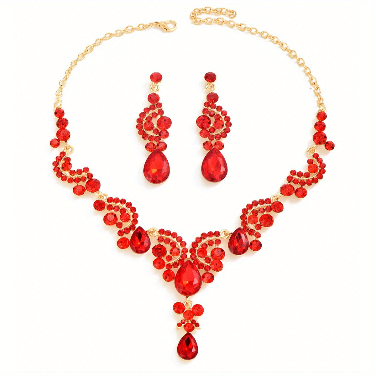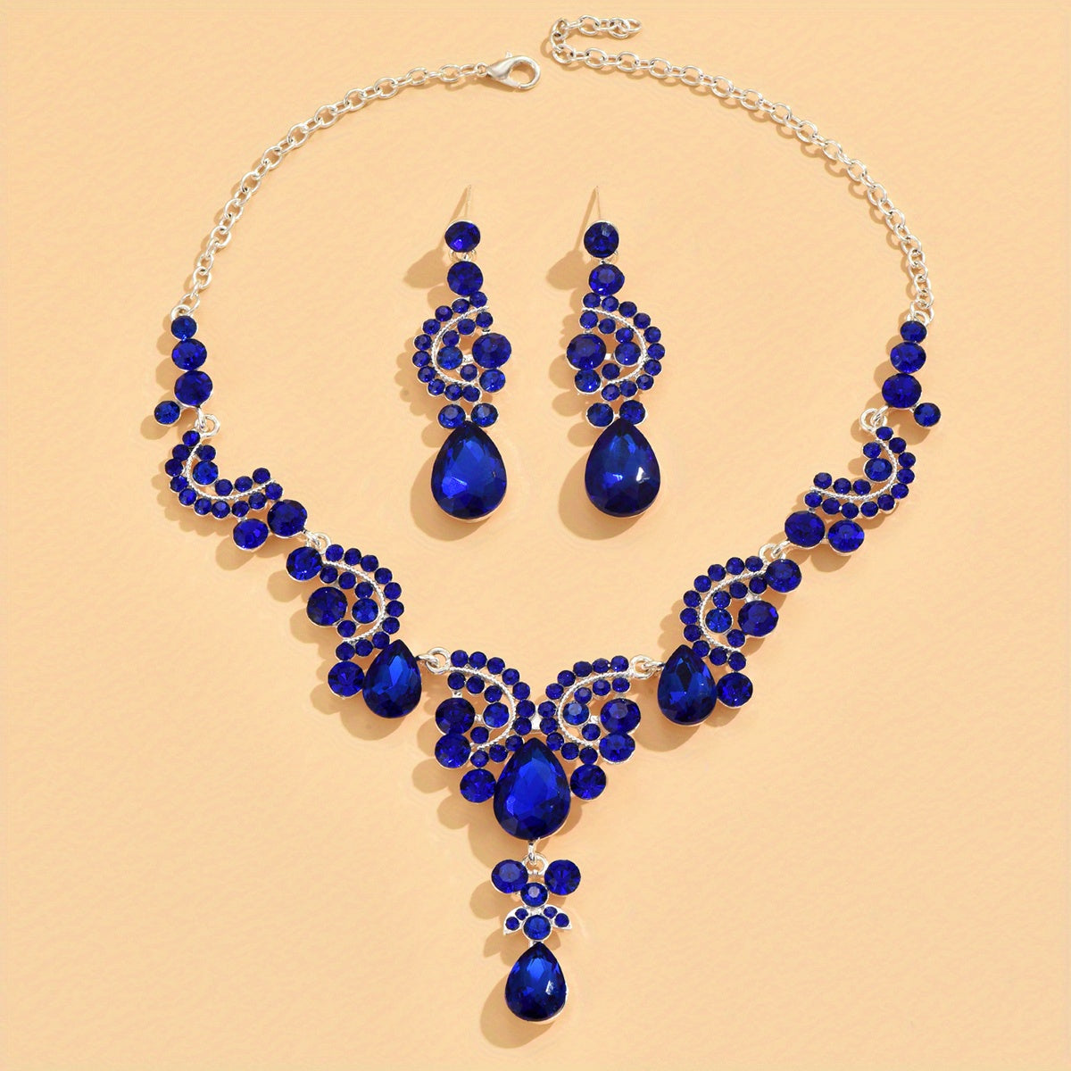 Elevate your style with this stunning jewelry set featuring a pendant necklace and dangle earrings adorned with inlaid synthetic gems.