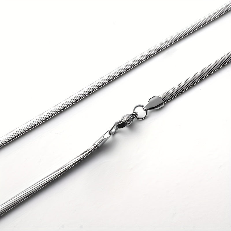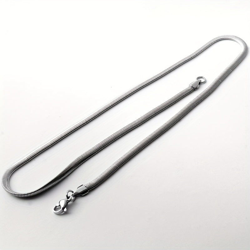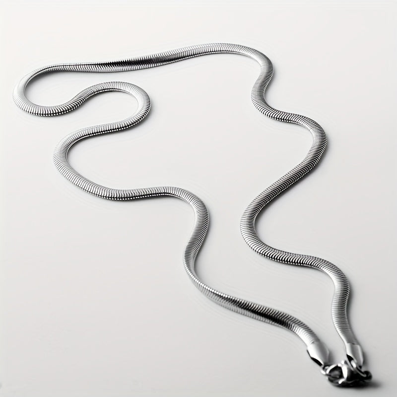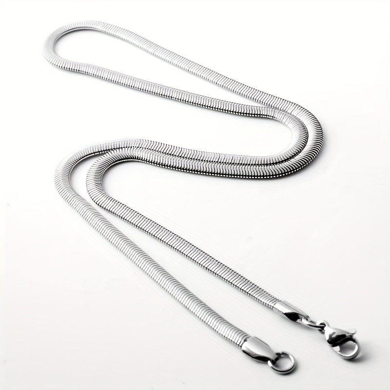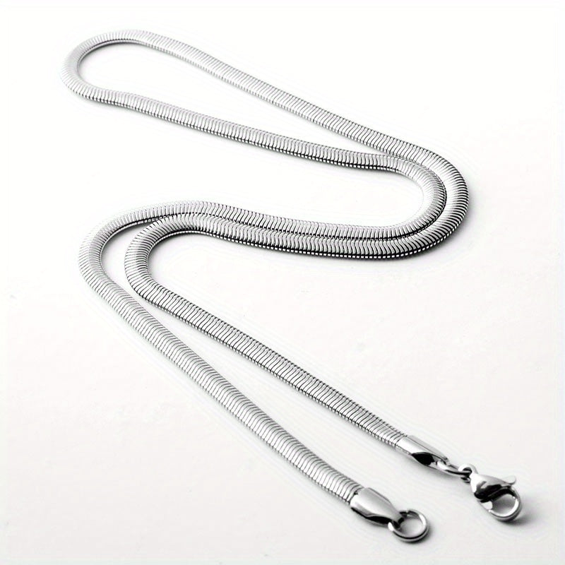 This titanium steel necklace is a trendy and stylish accessory for both men and women. It features a flat snake chain design that adds a touch of personality to your look.