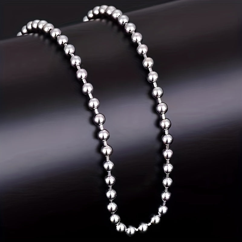 This necklace is made of high-quality titanium steel, featuring round bead design. It is a versatile unisex accessory that adds a modern touch to any outfit.