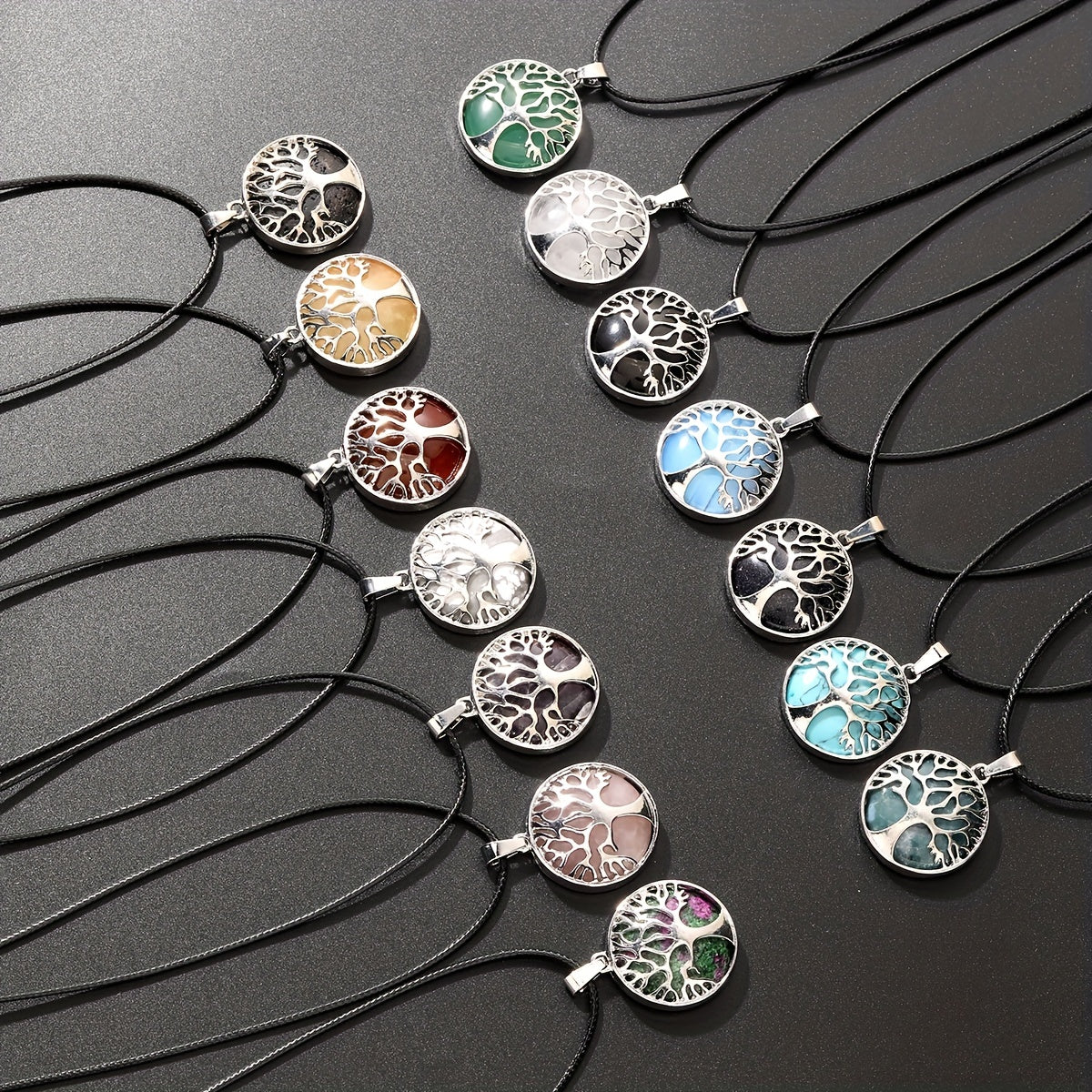 Add a touch of natural beauty to your necklace with these Tree of Life gemstone pendants. Each pendant features a different healing energy stone for a unique and stylish look.