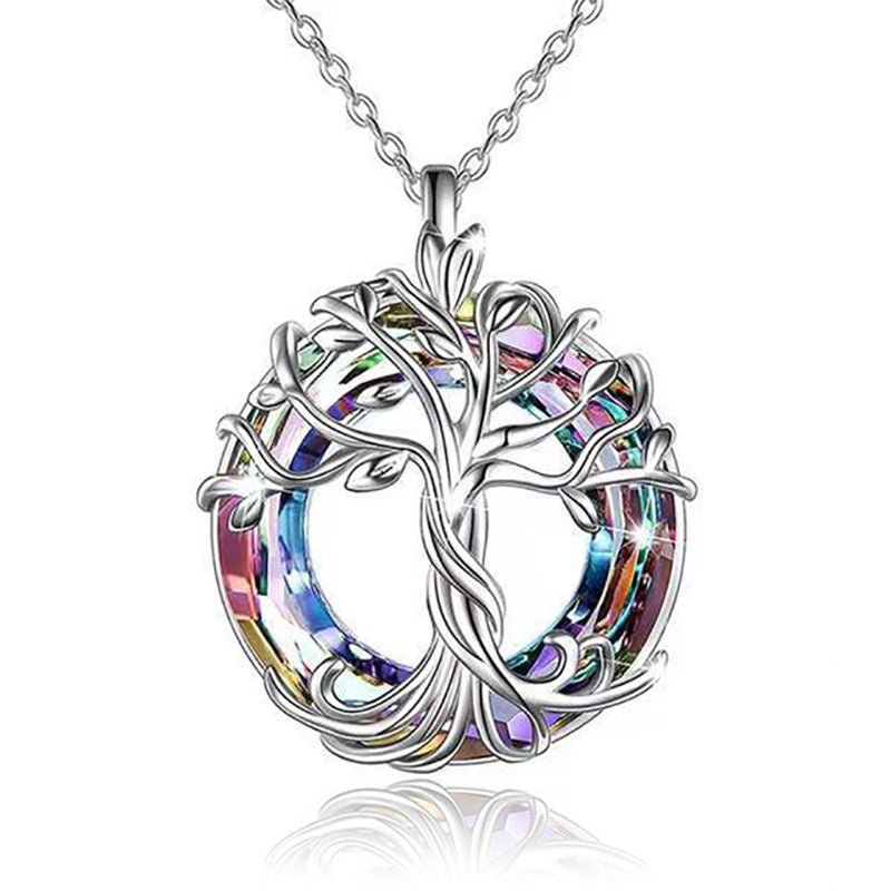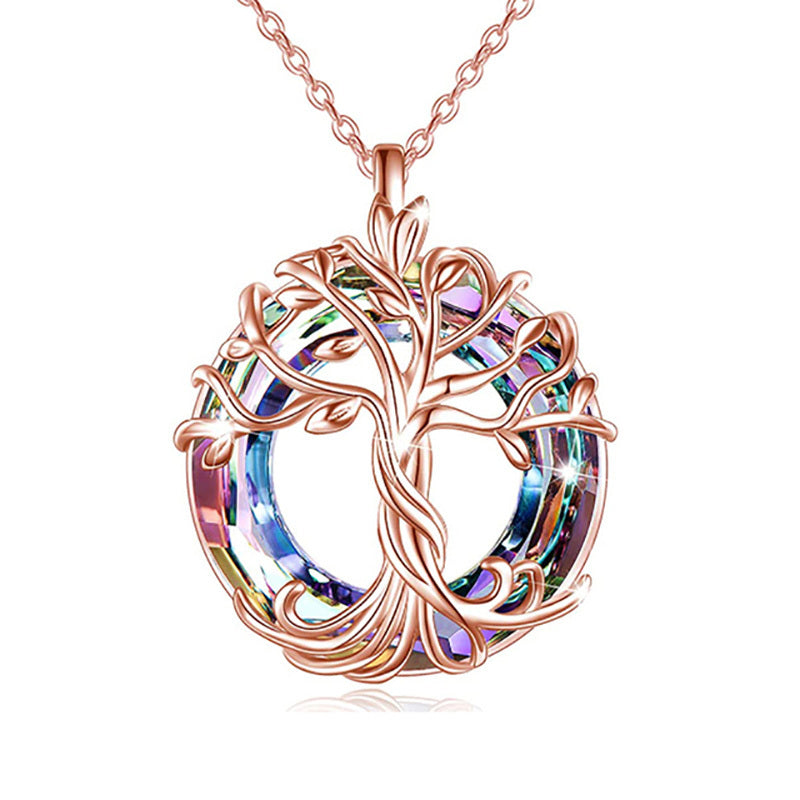 This stunning Tree of Life necklace features a round rainbow crystal pendant. Perfect gift for women, girls, friends, mom on special occasions.