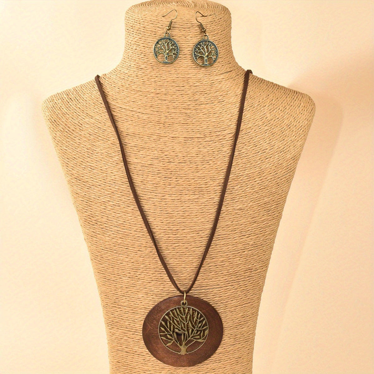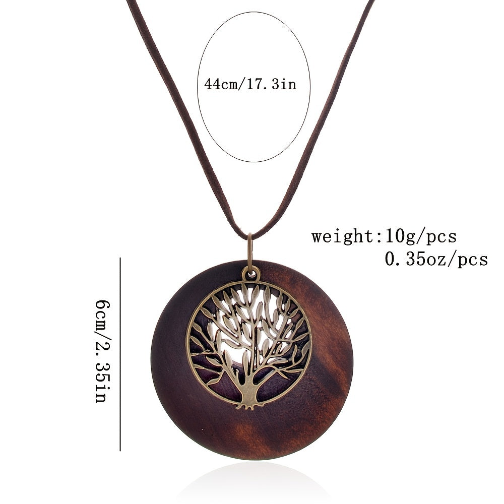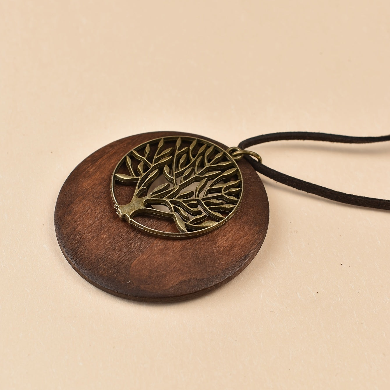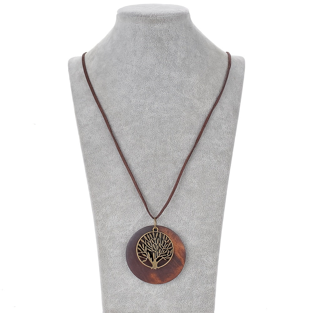 Embrace tranquility with this peaceful wooden necklace featuring a tree of life shape pattern. Vintage style neck jewelry for nature lovers.