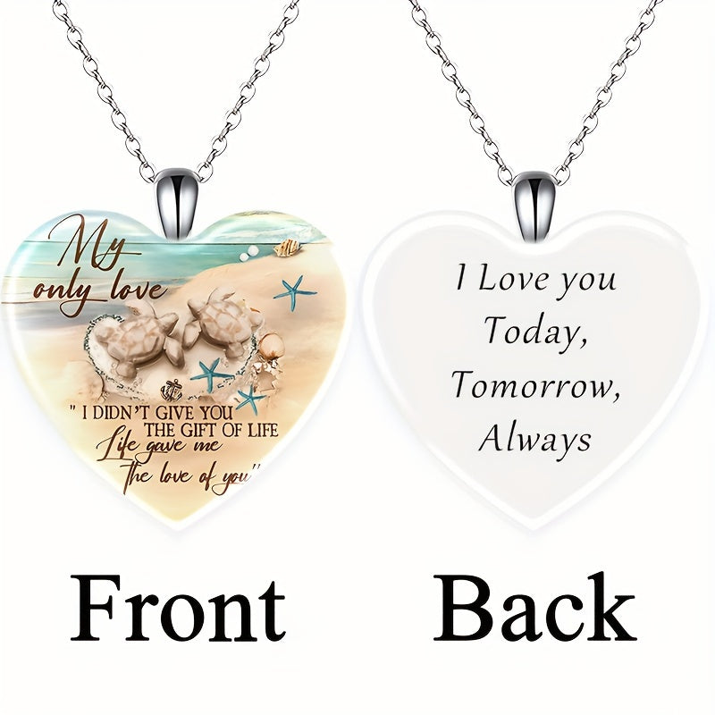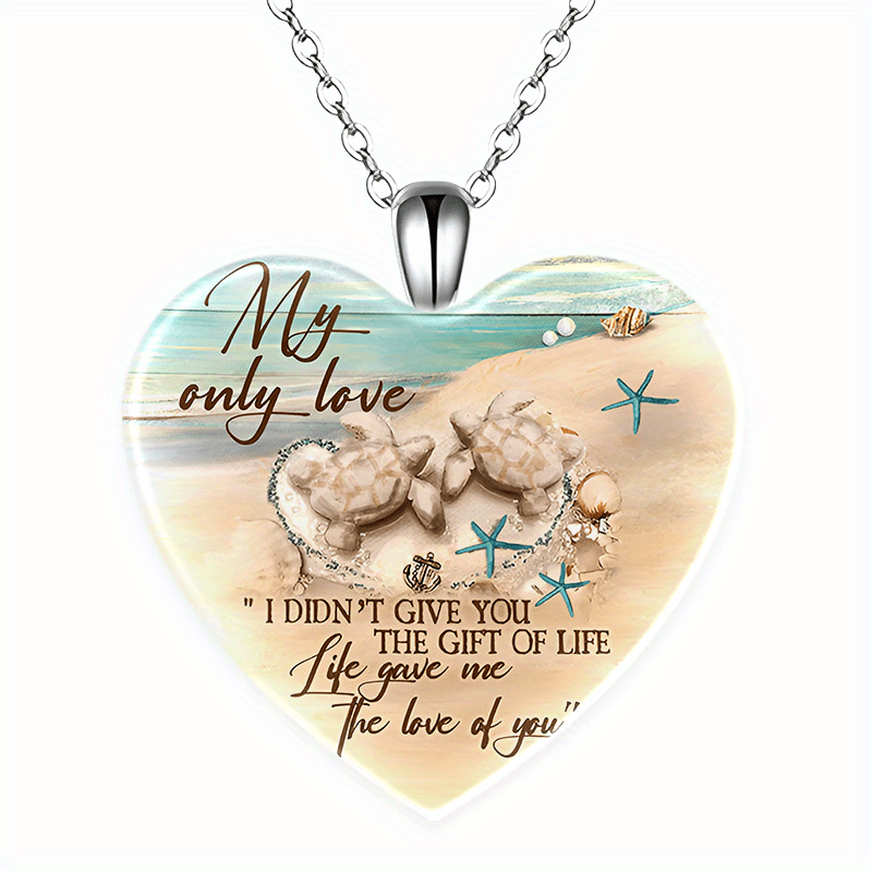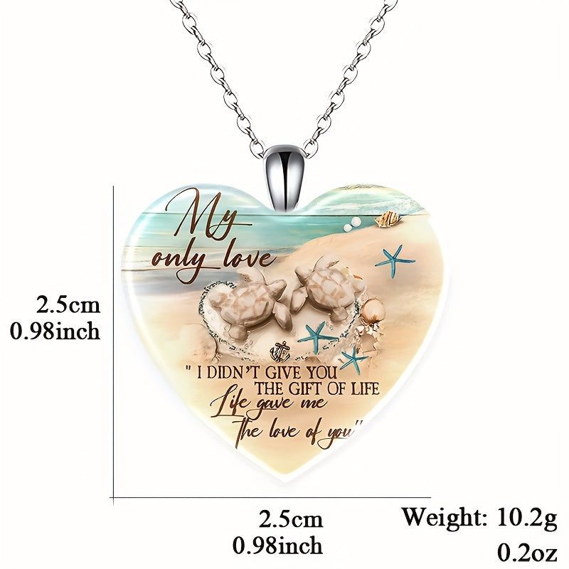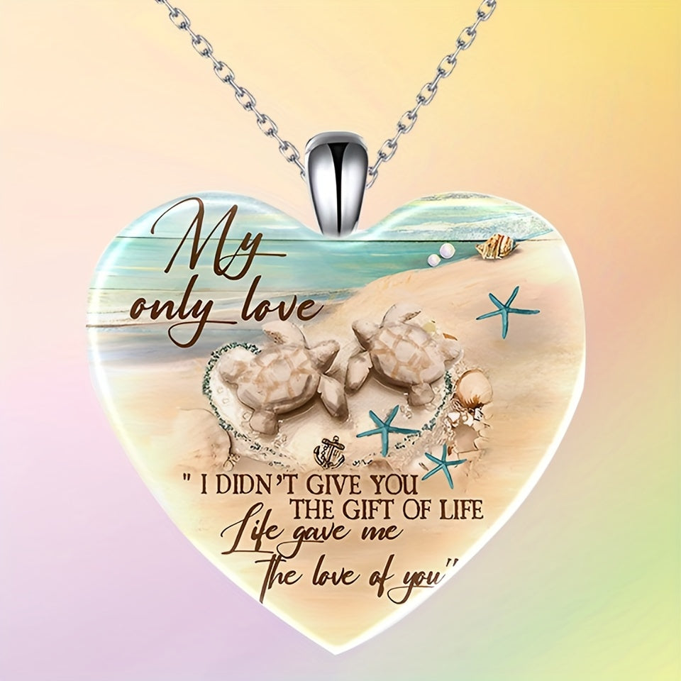 This pendant necklace features a creative turtle pattern in a heart shape, making it a perfect decorative accessory for holiday parties or as a birthday gift.