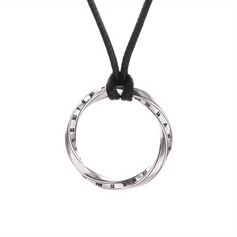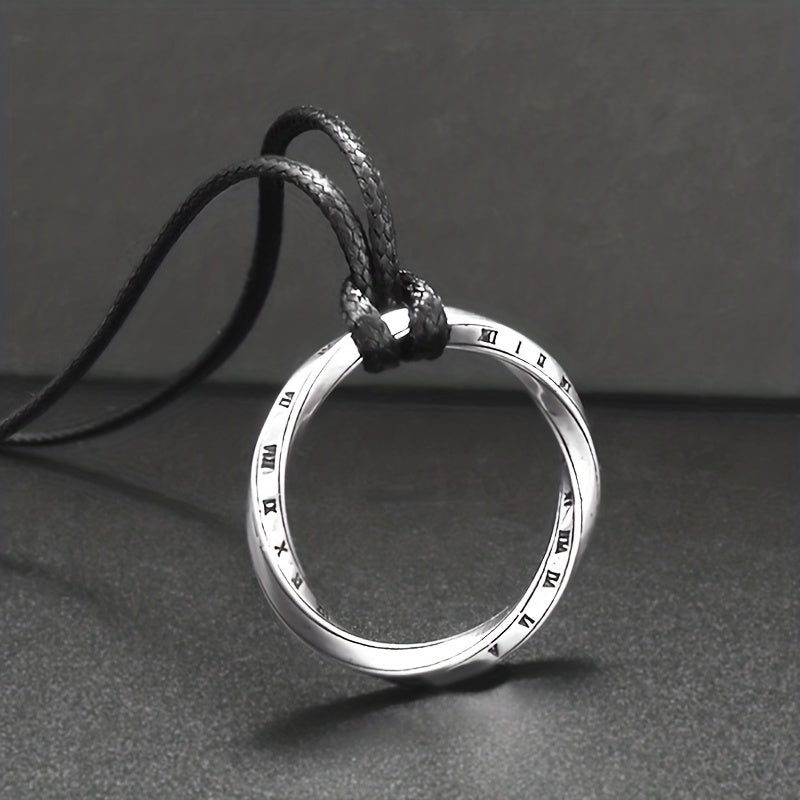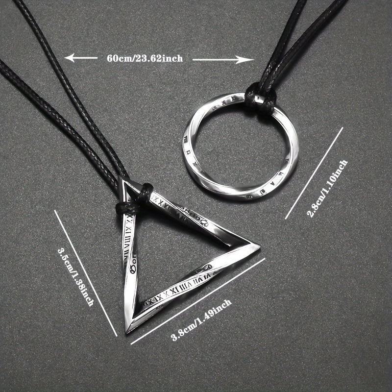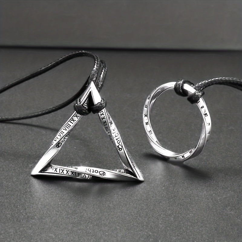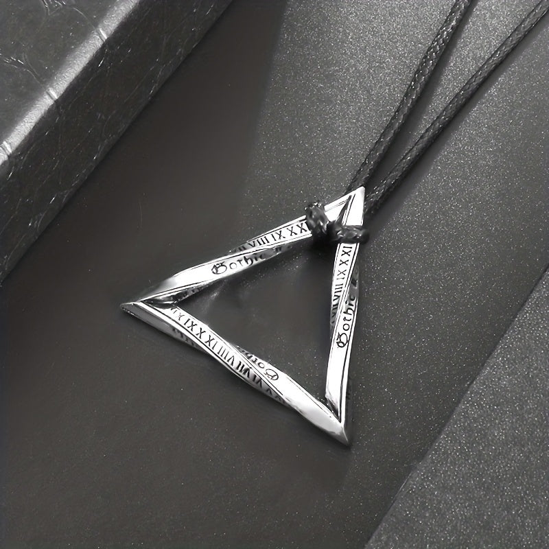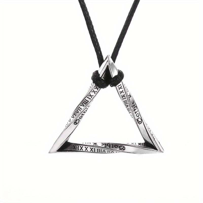 This pendant necklace features a twisted ring and triangle design on a leather rope, making it a stylish accessory for both women and men. It's a great gift option for hip hop jewelry enthusiasts.