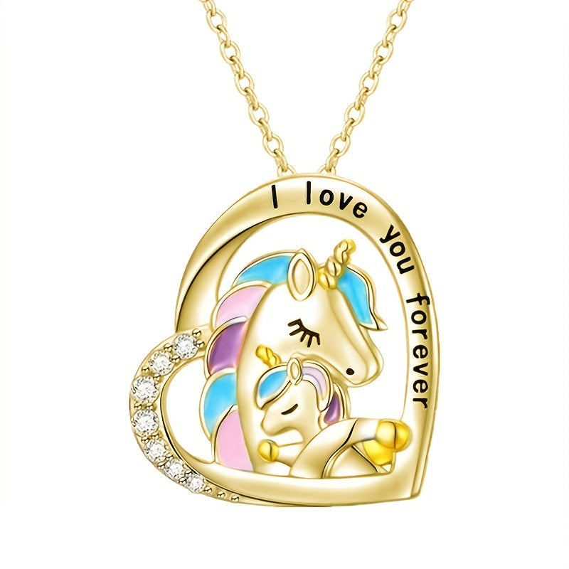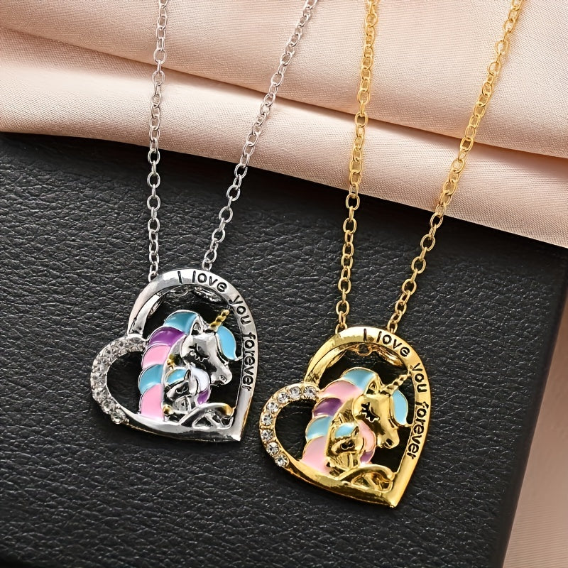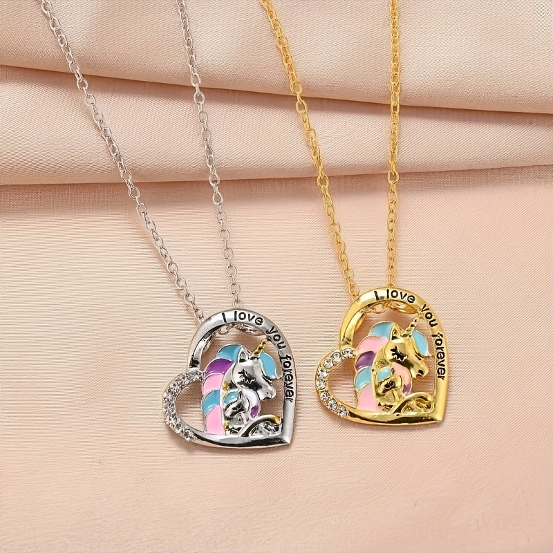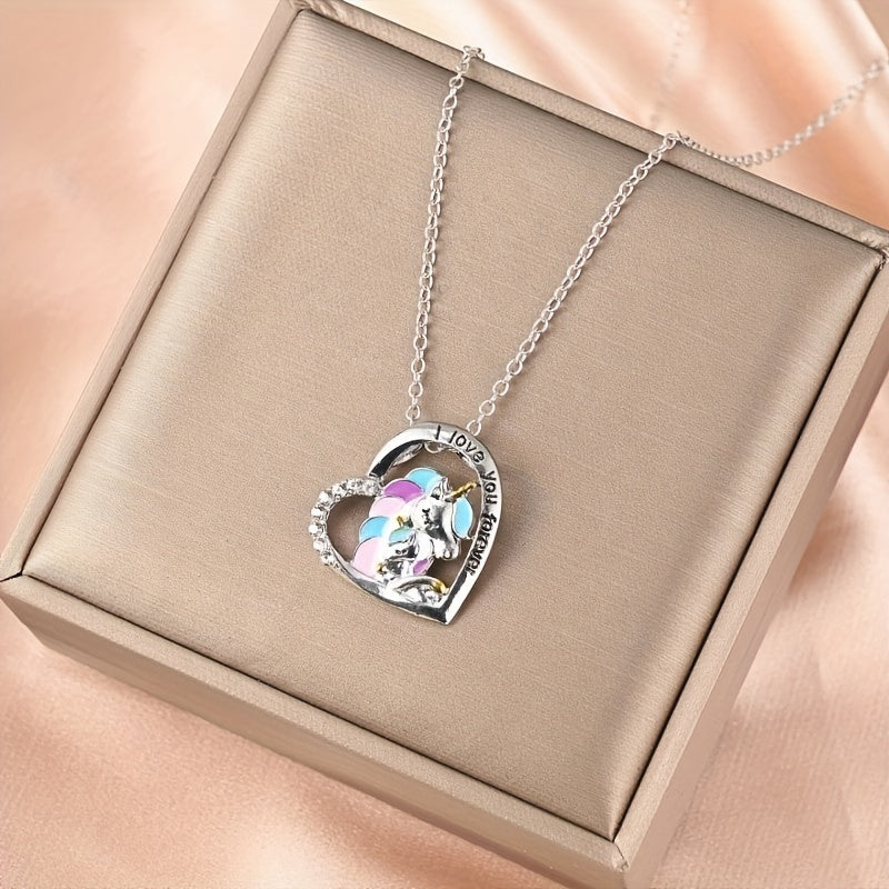 Express your love with this dainty heart-shaped pendant necklace featuring a unicorn design. Perfect for weddings, engagements, or as a thoughtful gift for Thanksgiving or Christmas.