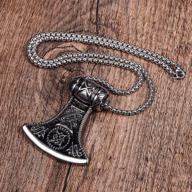 This Viking ax pendant necklace is a stylish and meaningful piece of jewelry suitable for men, couples, or women. Made of high-quality stainless steel, it makes a great gift.