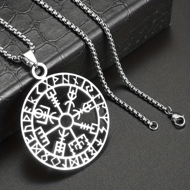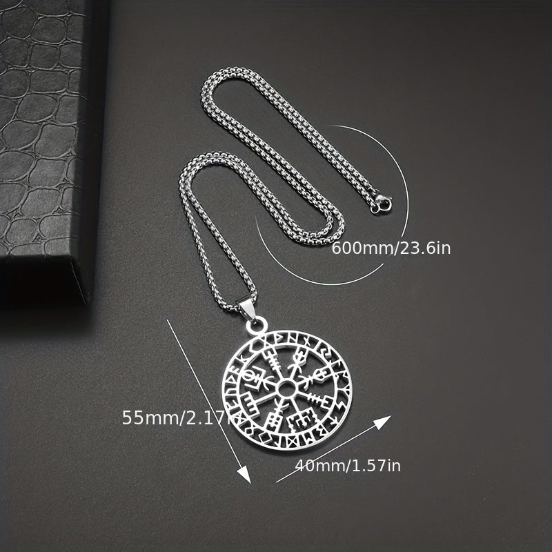 This Viking necklace features a hollow compass design made of stainless steel, a perfect amulet jewelry gift for men, couples, or women.