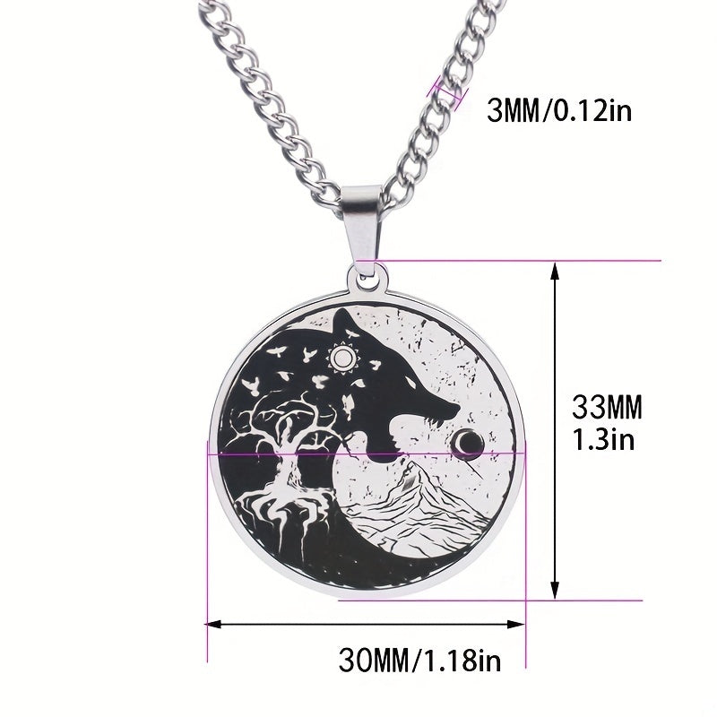 This Viking necklace features a striking design with symbols like the Sun, Moon, Wolf Head, Mountain, and Tree of Life. Made of durable stainless steel, this pendant necklace is a great gift for men.