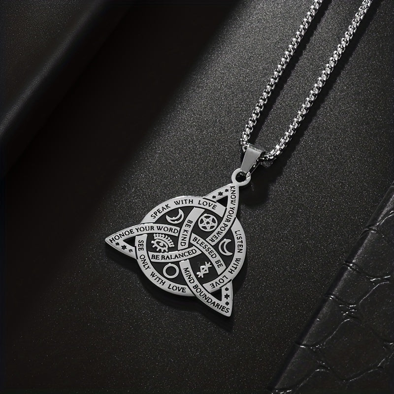 This stainless steel necklace features a Celtic knot pendant with a Viking witch design, offering protection and style. Perfect for women and men.