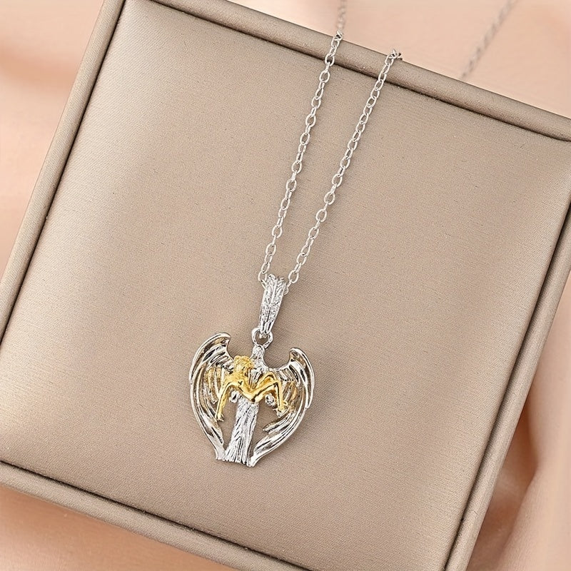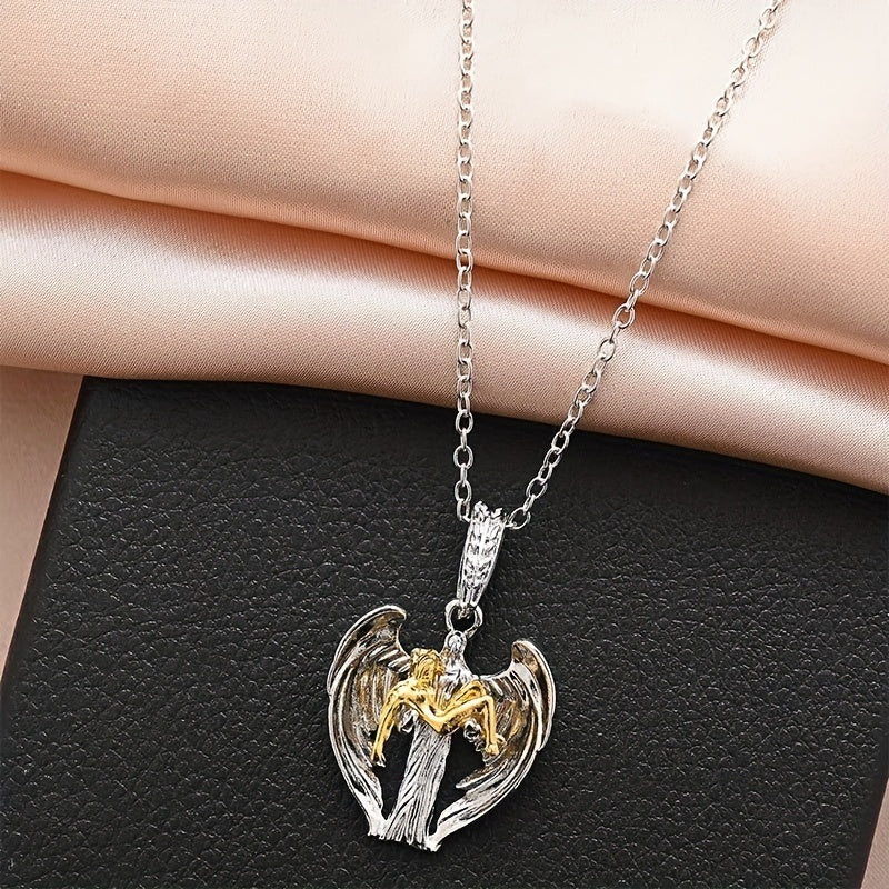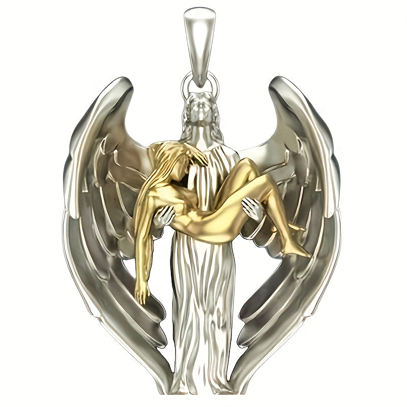 Beautiful vintage angel pendant necklace suitable for men, symbolizing redemption and faith. This religious necklace is a timeless piece that adds a touch of elegance to any outfit.