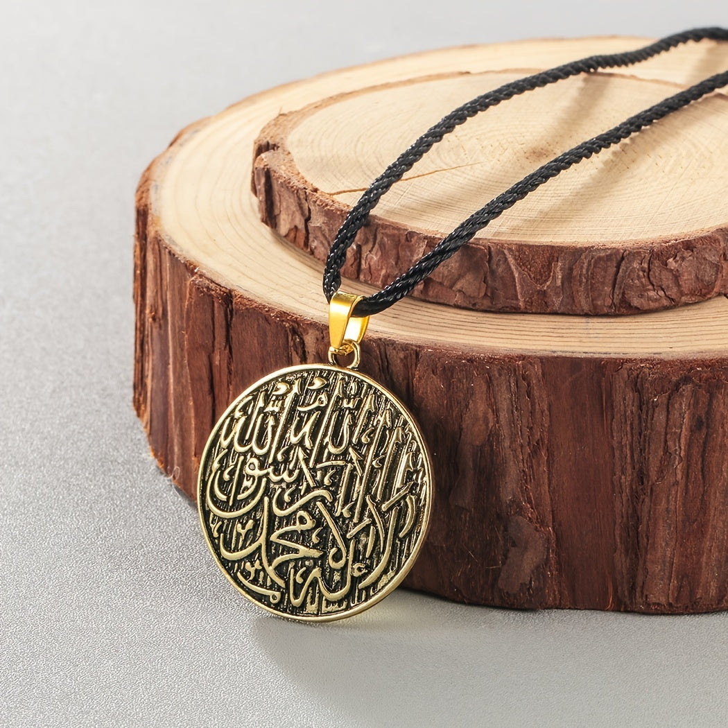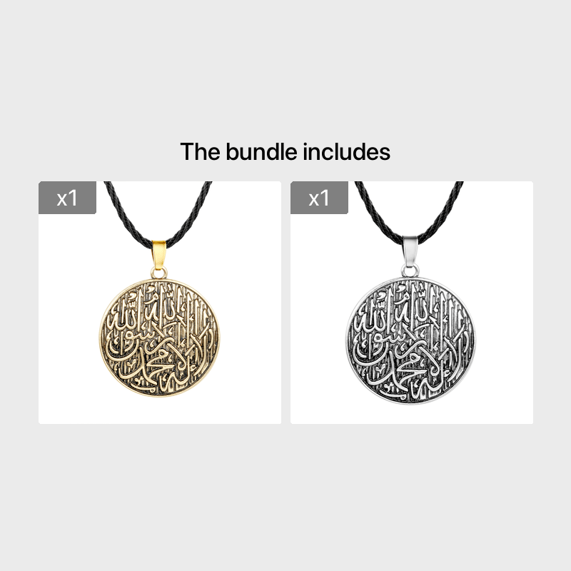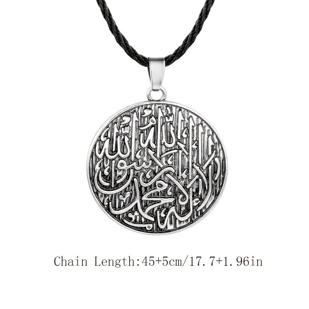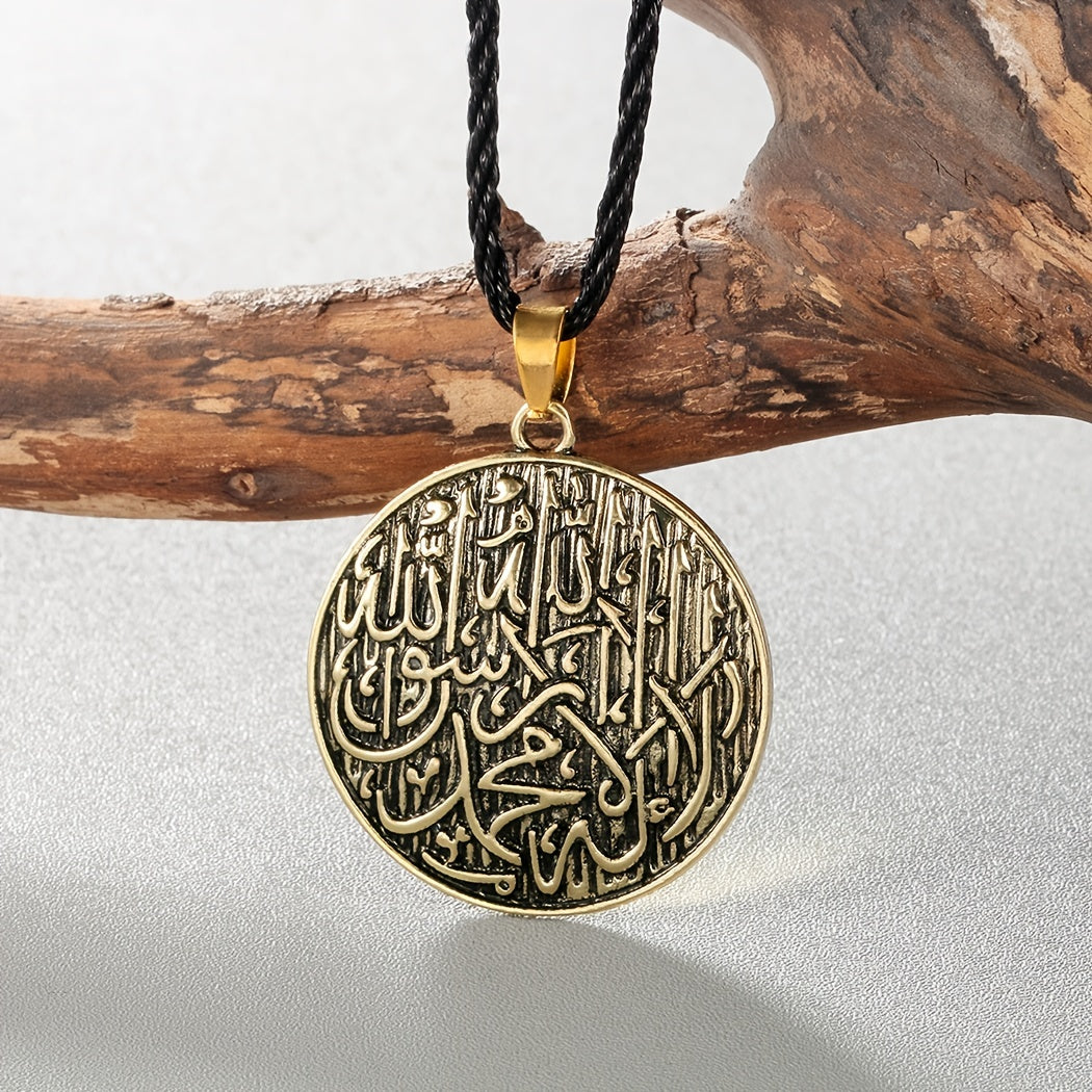 This antique style necklace features an Arabic name pendant engraved with the Shahada and Allah. Perfect for both men and women with a vintage ethnic design.