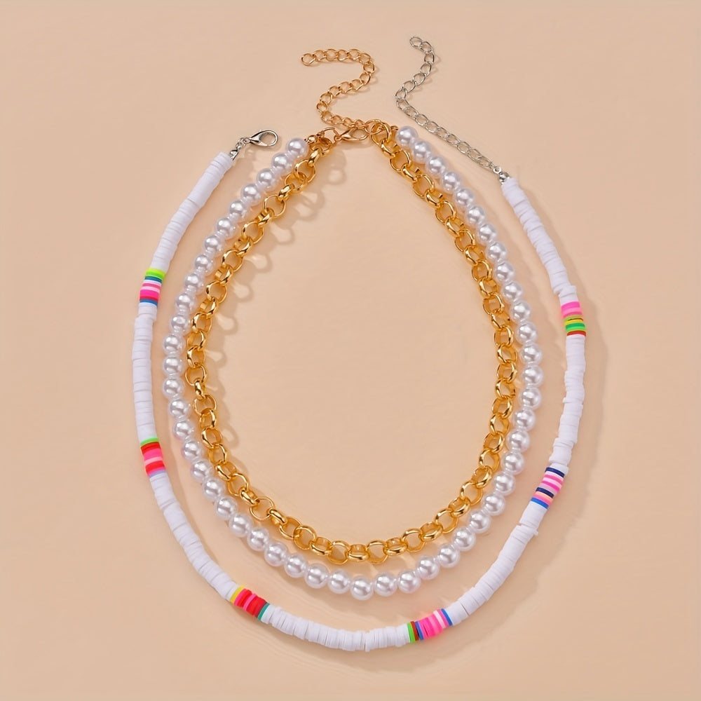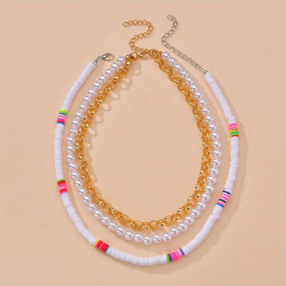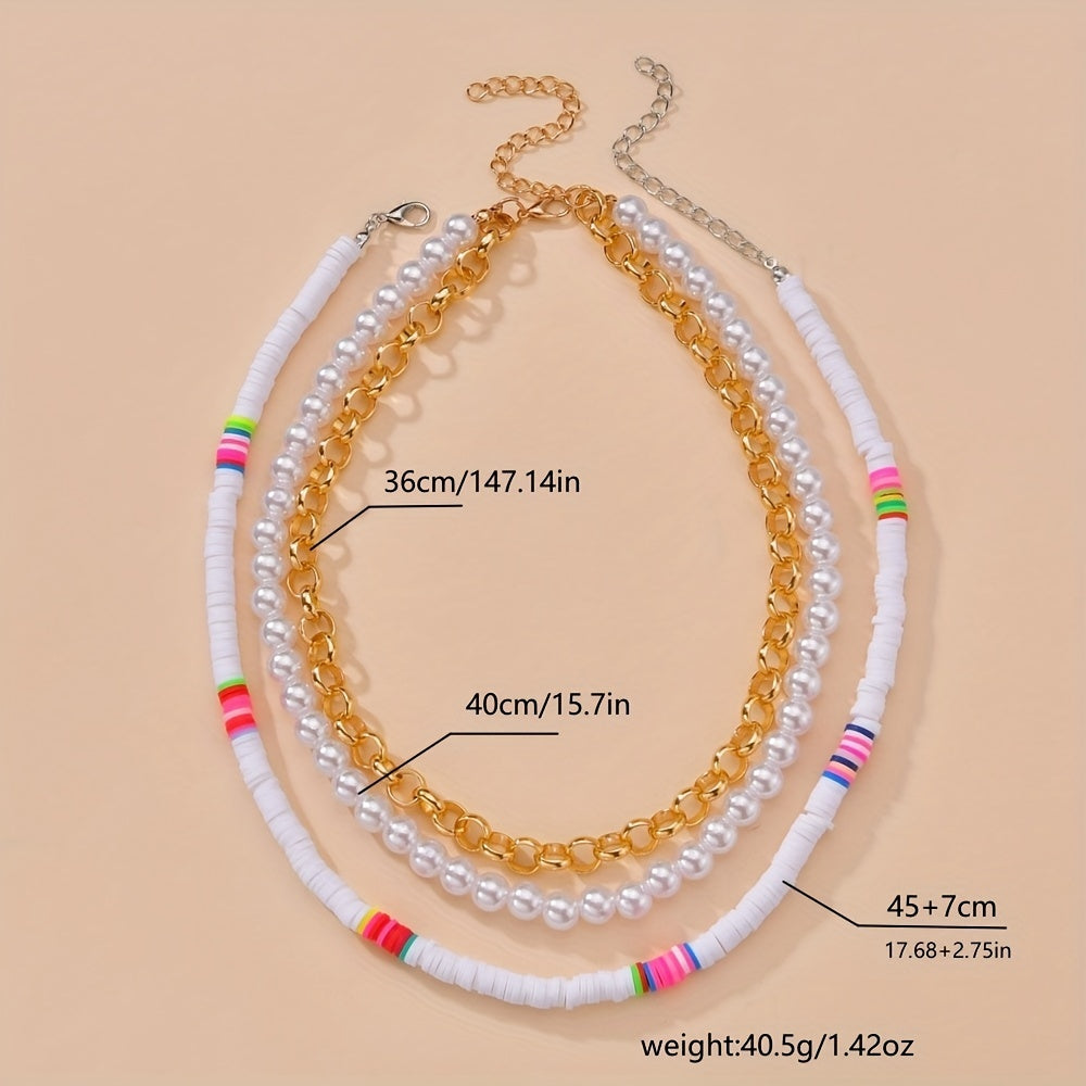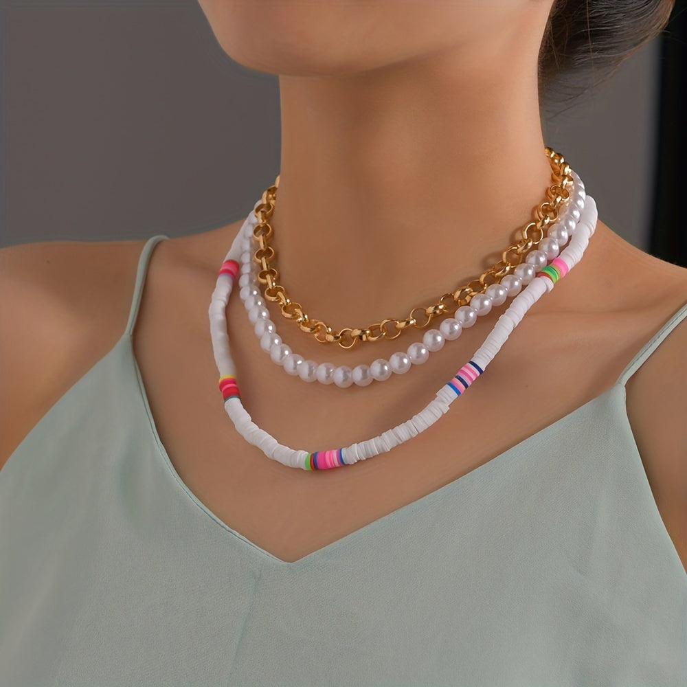 This 2-piece set features a vintage beach style soft pottery spacer pearl multilayer necklace perfect for women who love unique accessories.