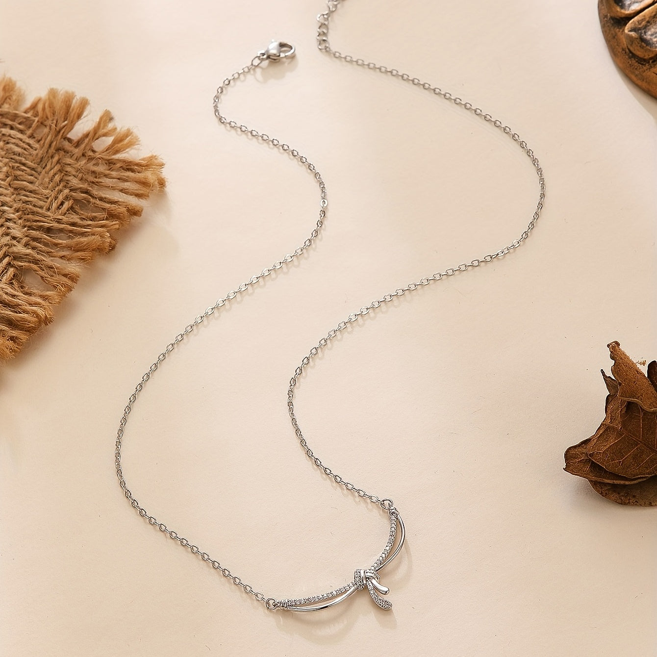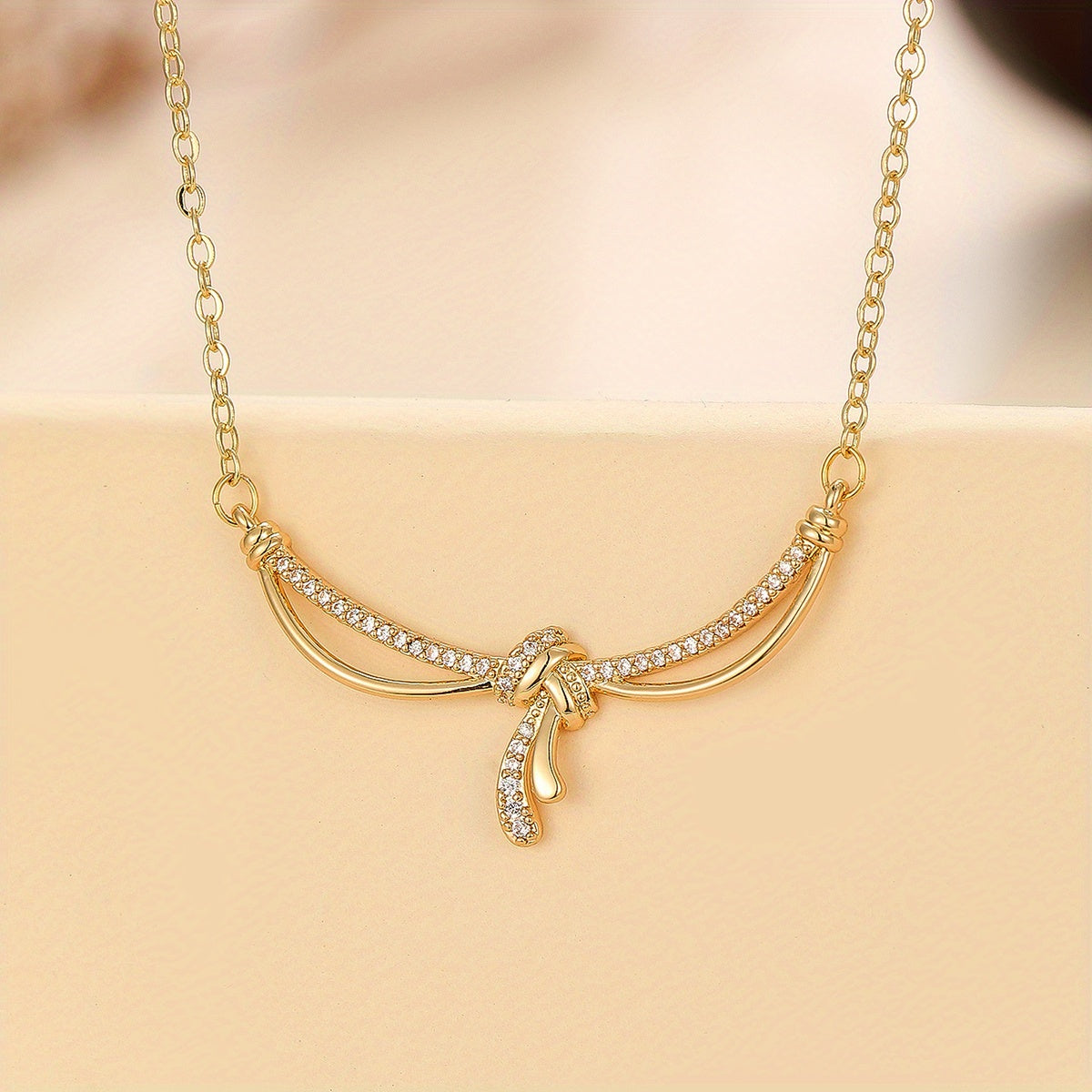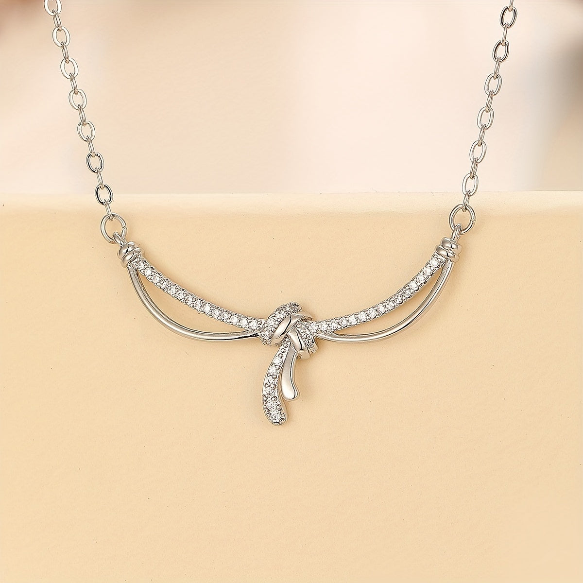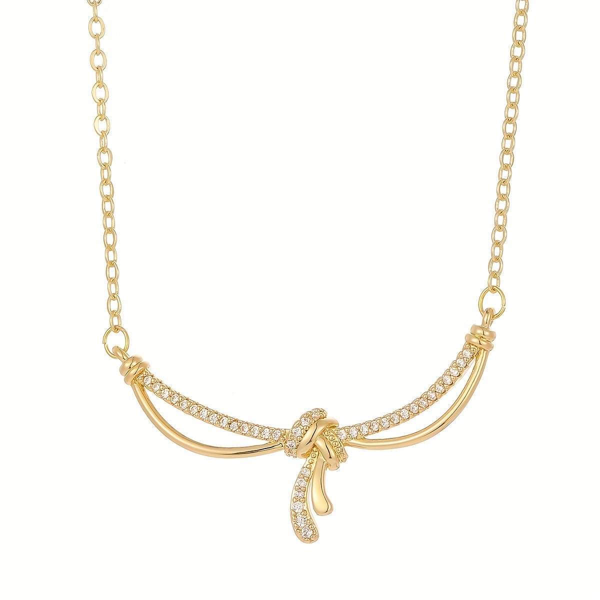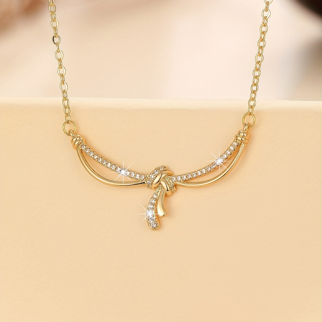 This vintage bowknot necklace features zircon inlays, making it a perfect jewelry gift for an elegant and creative personality.