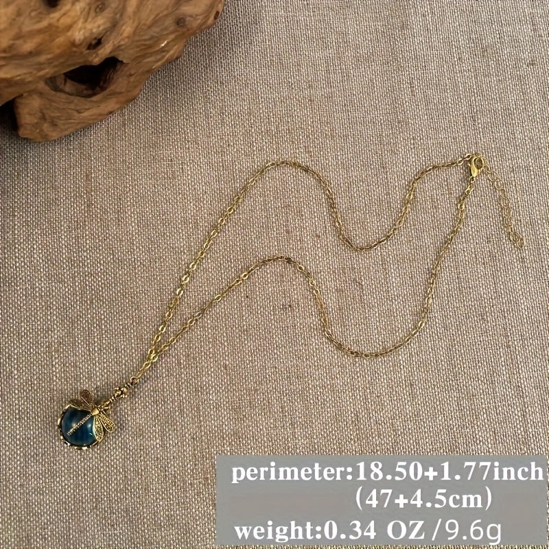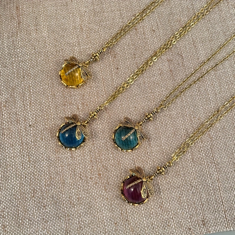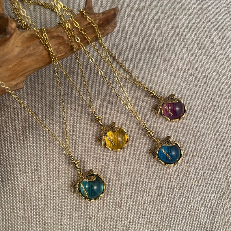 Vintage Dragonfly Pendant Necklace Ethnic Green Stone Neck Jewelry