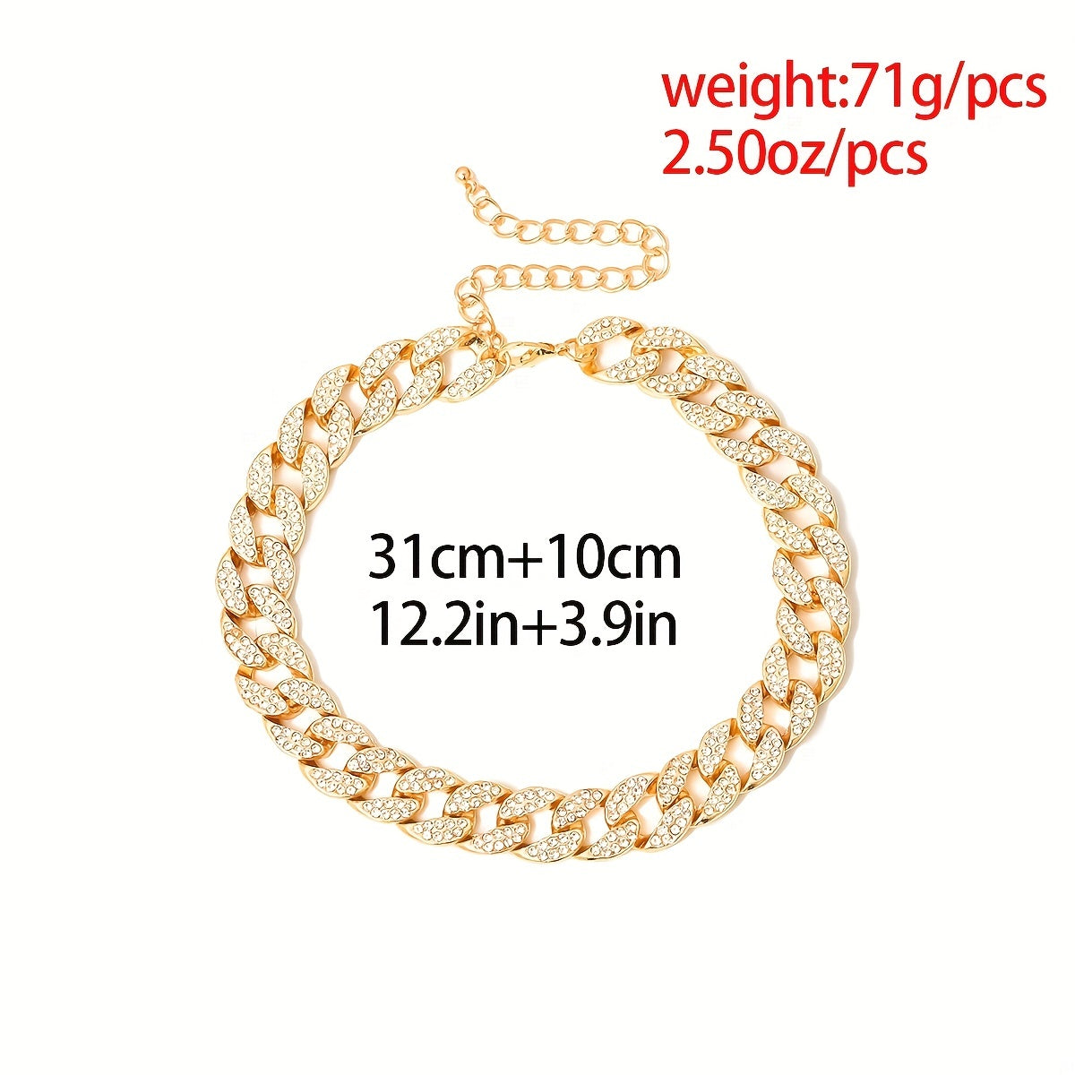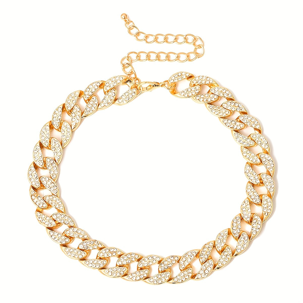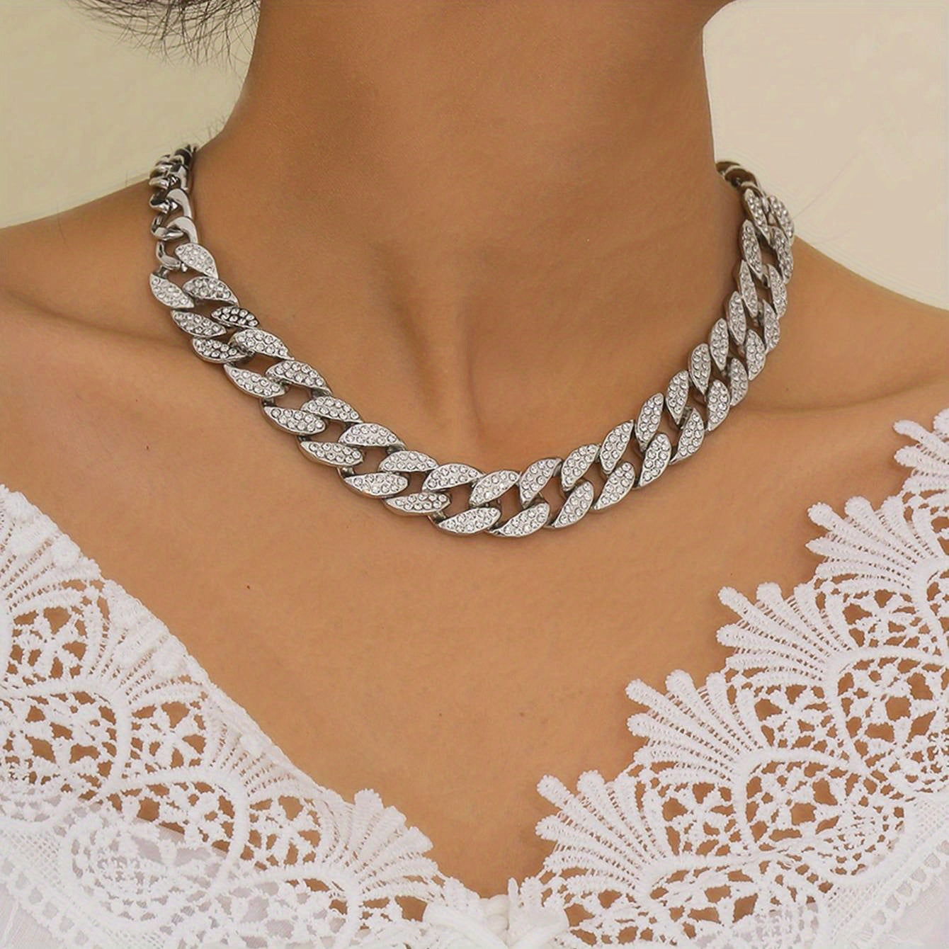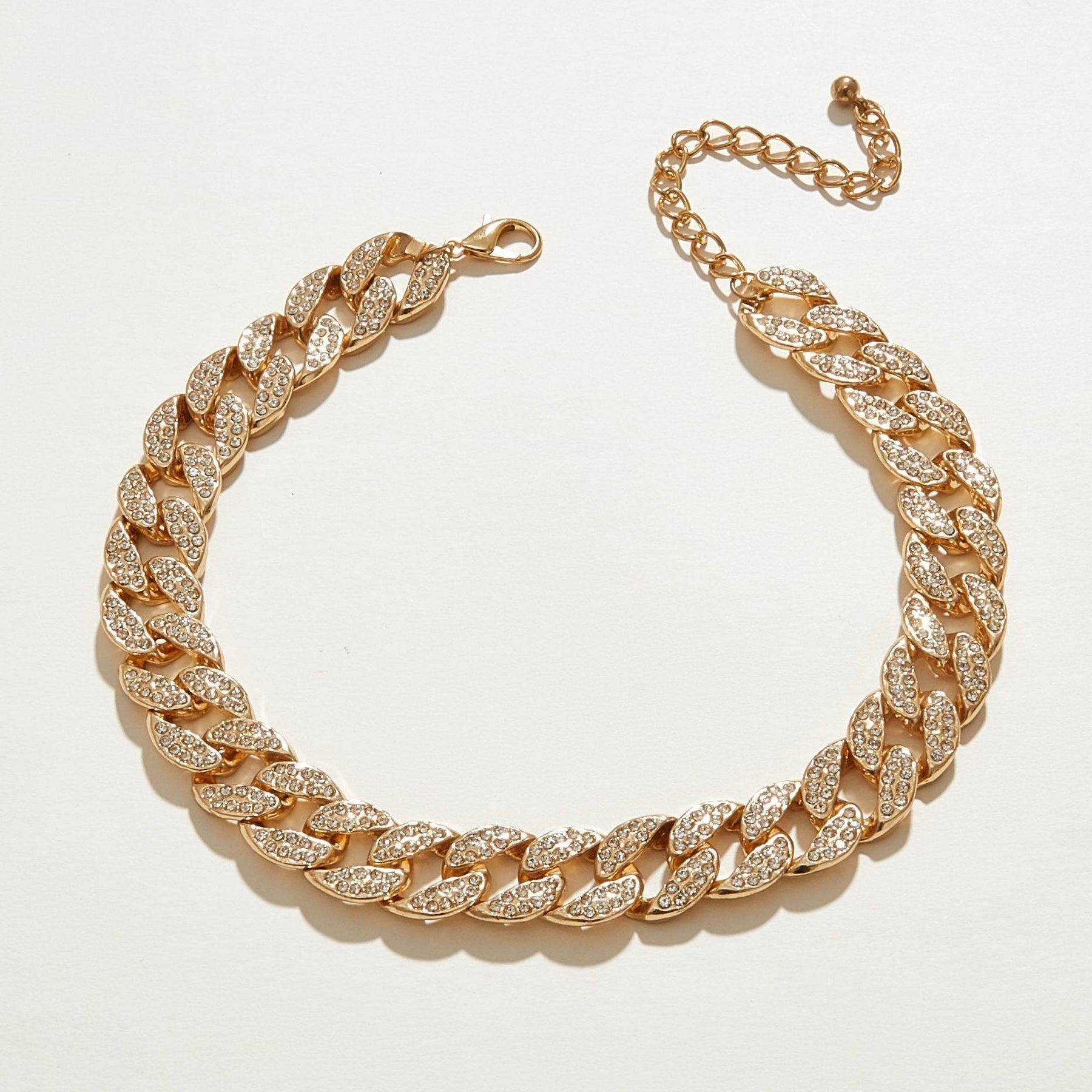 Vintage Inlaid Rhinestone Cuban Chain Choker Necklace