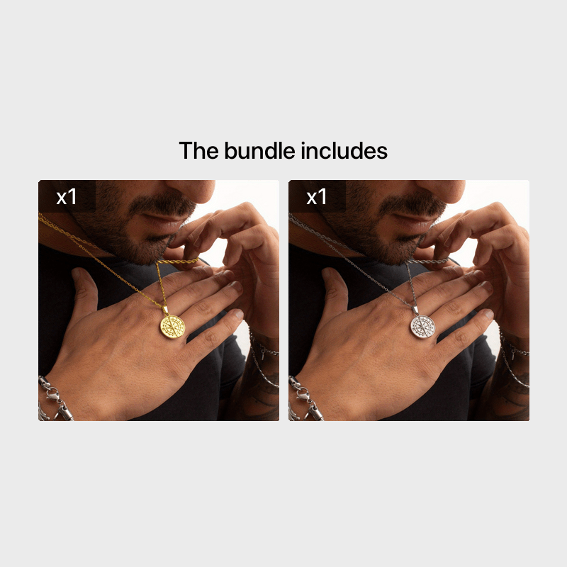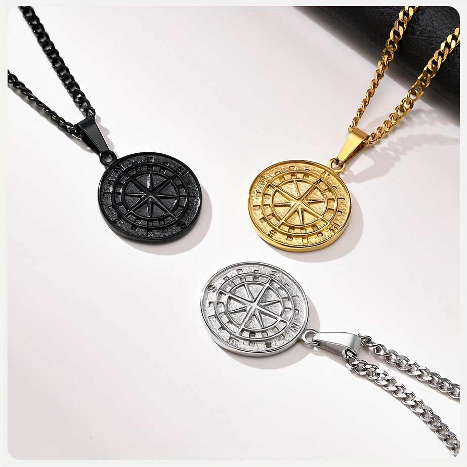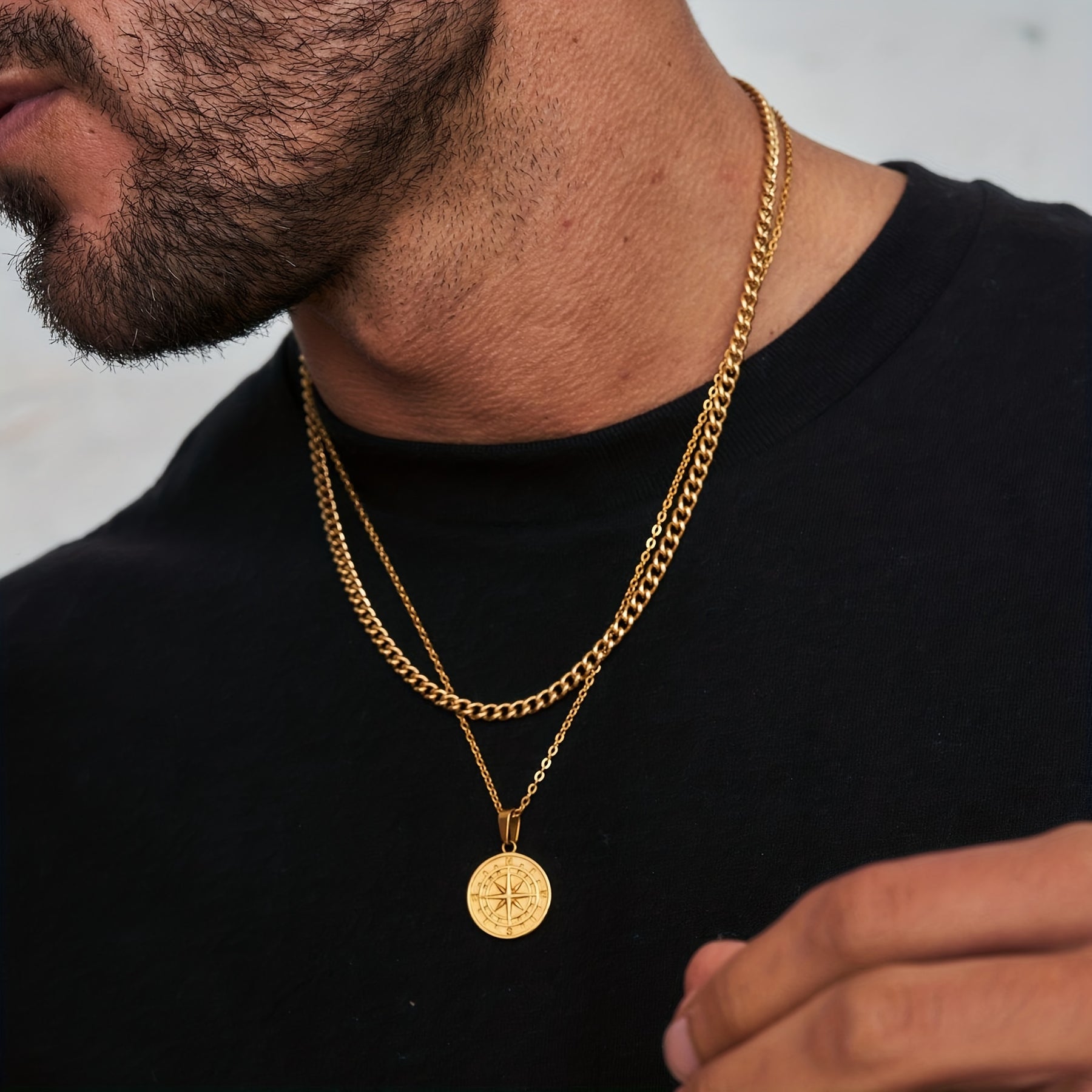 This set includes two men's vintage layered necklaces featuring a nautical travel compass pendant. The design is perfect for those who love to travel or appreciate nautical themes.