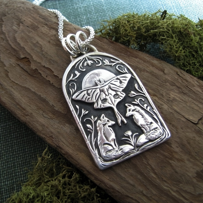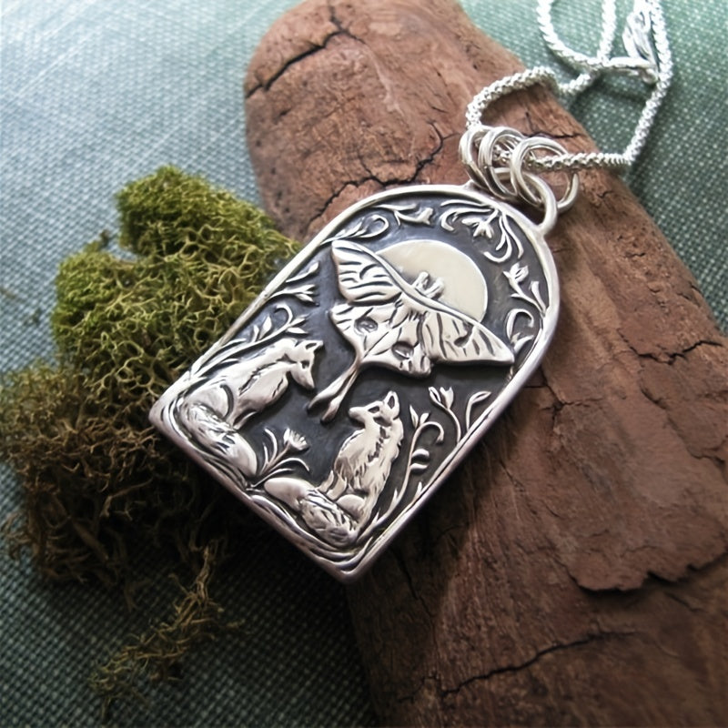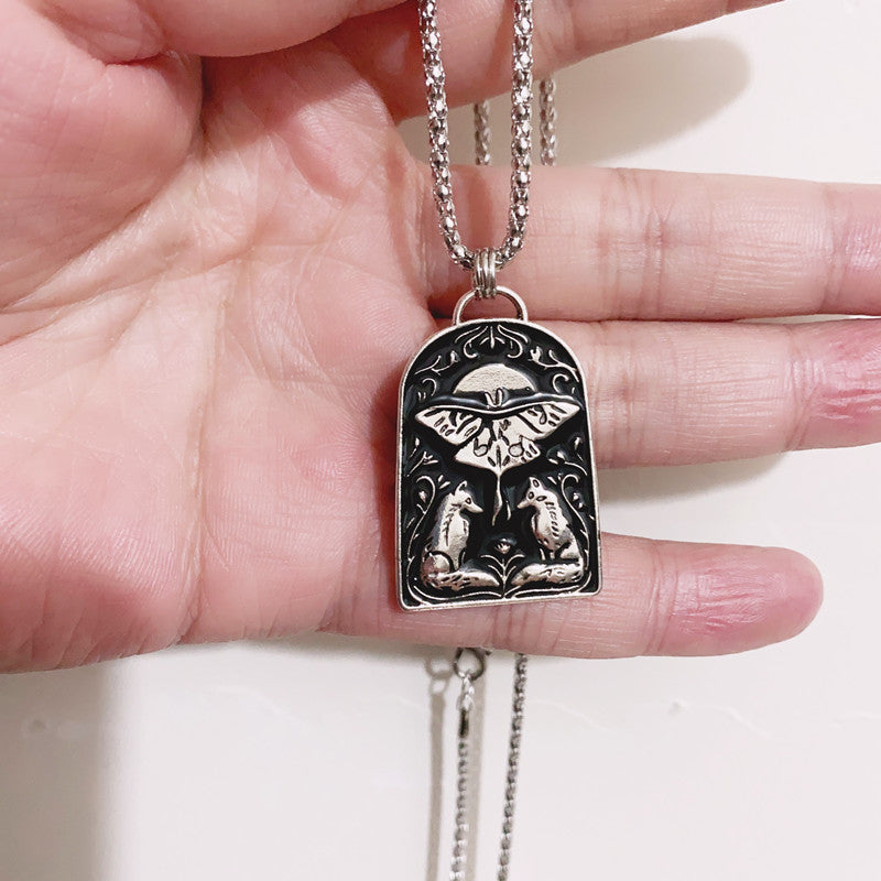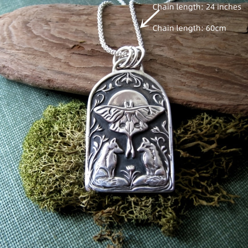 This vintage style pendant necklace features a moon, moth, and fox design, making it a unique accessory for men. The artificial jewelry is a great gift idea for any occasion.