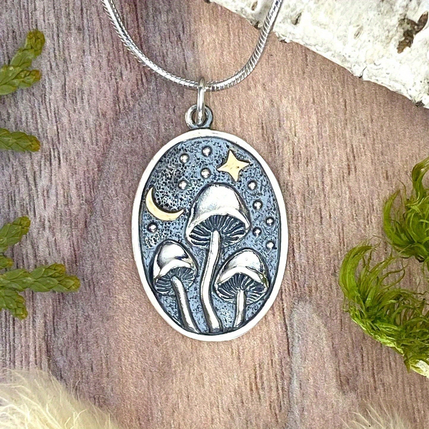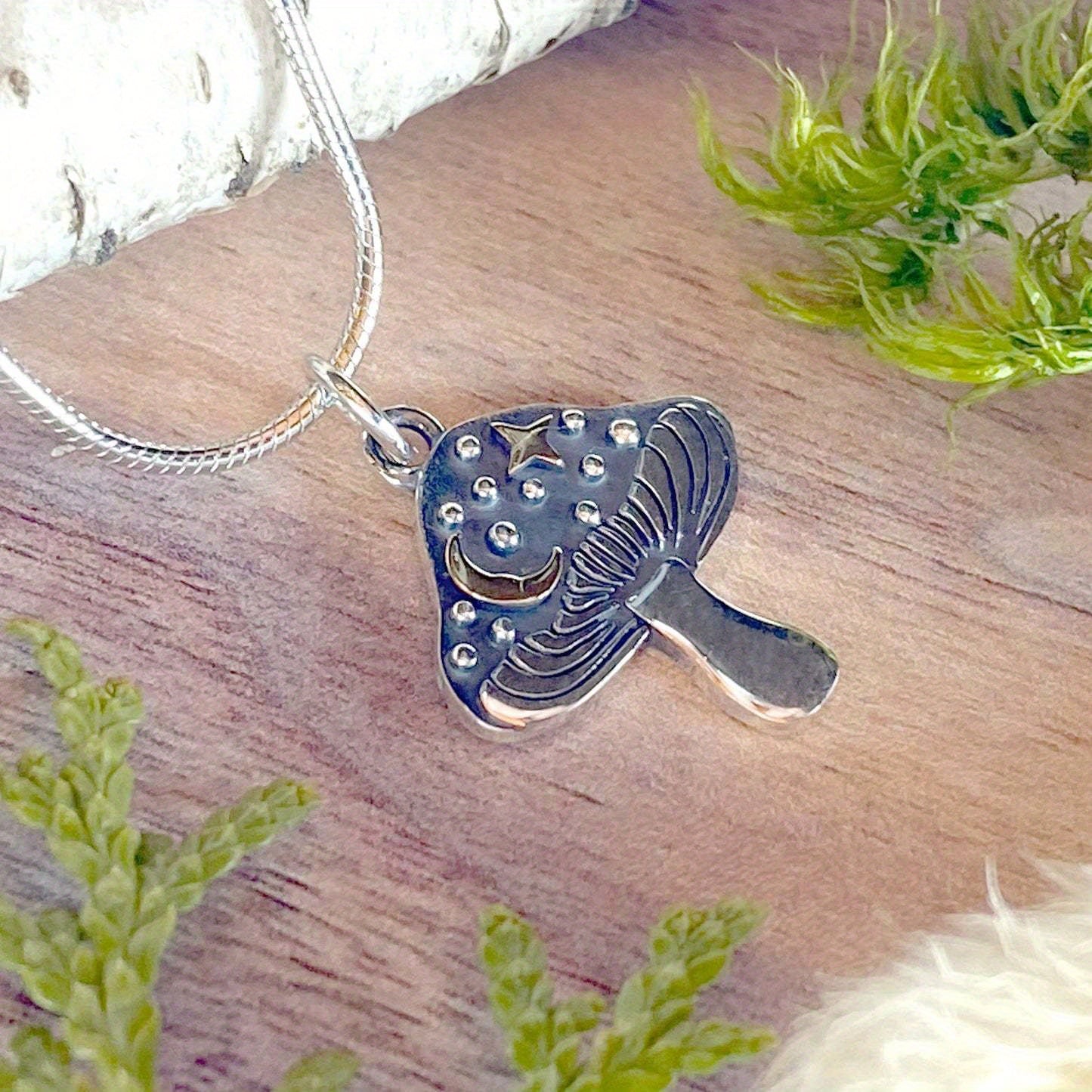Vintage Mushroom Pendant Necklace Oval Star Moon Mushroom Plant Small Mushroom