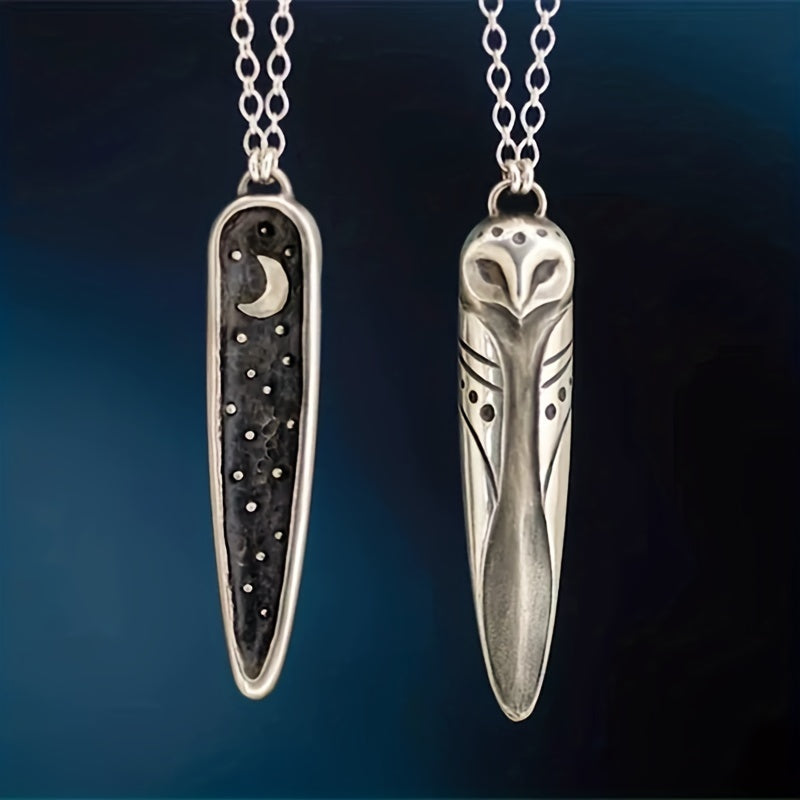This necklace features a silvery vintage owl moon pattern, making it a creative and stylish accessory. Perfect for women who love bohemian jewelry.
