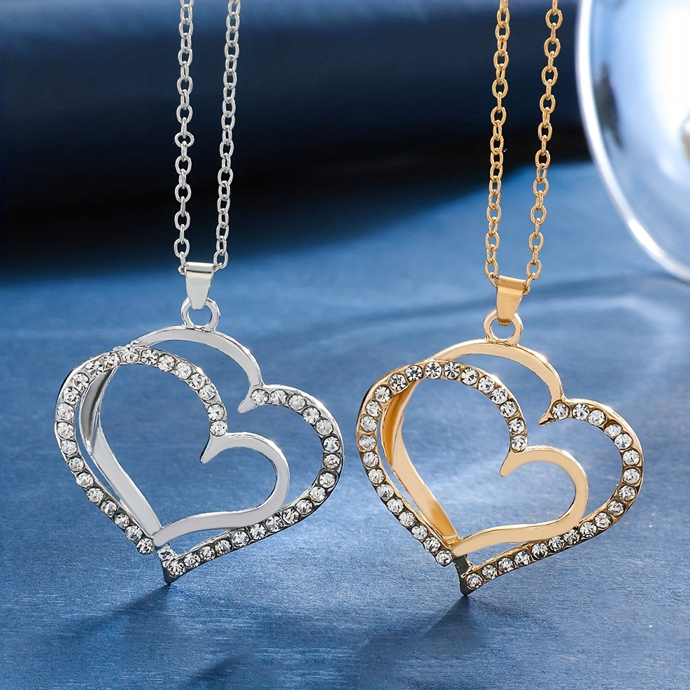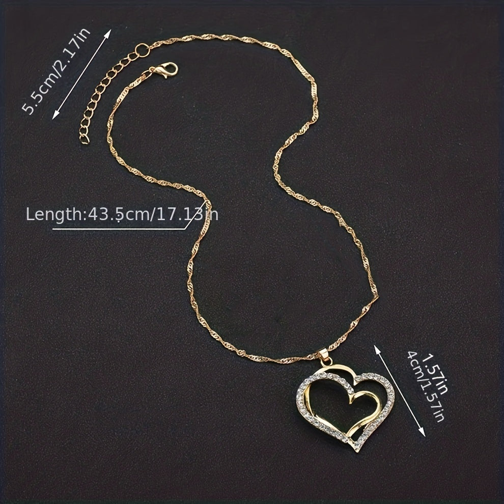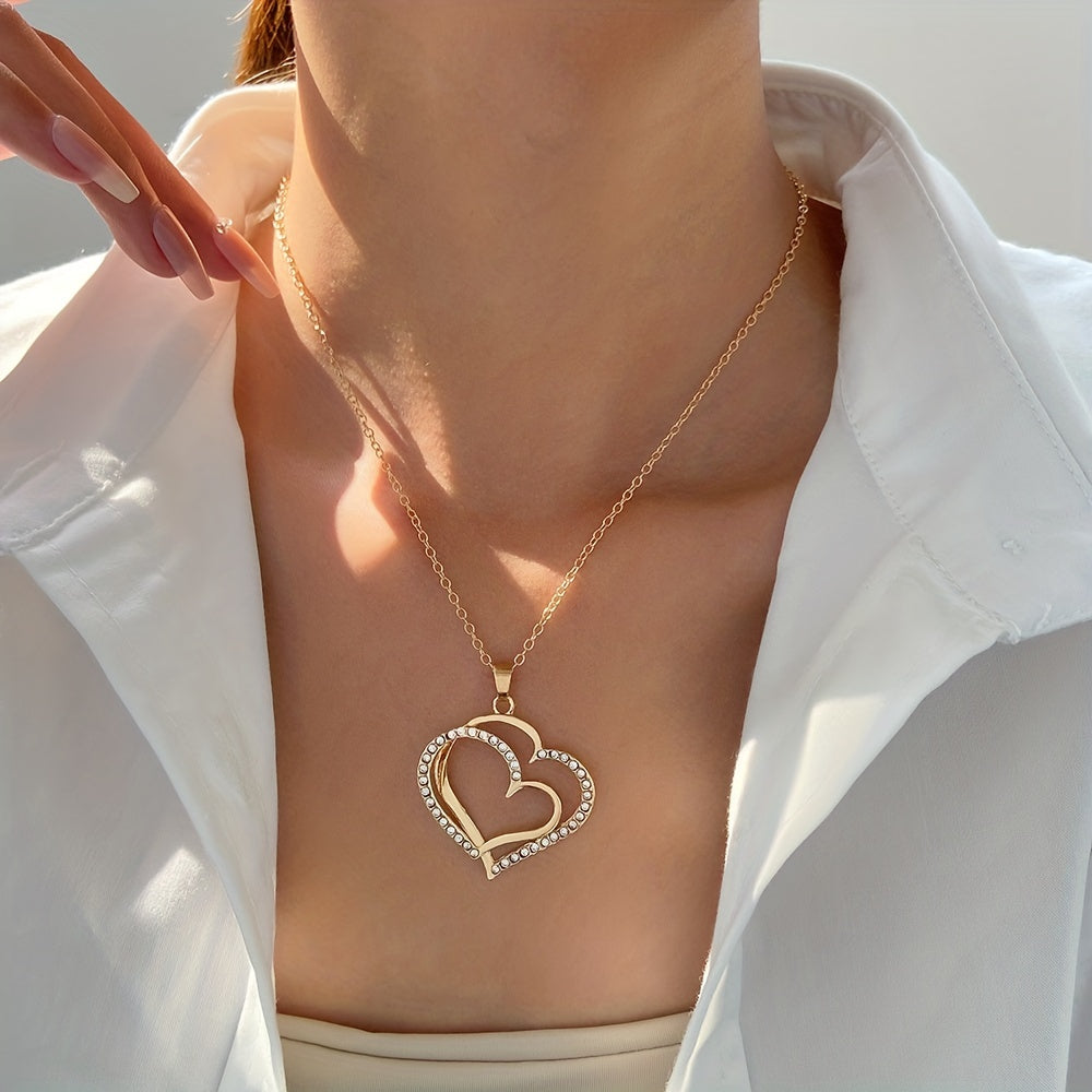 This stunning necklace features double hollow love hearts inlaid with sparkling zircon stones, perfect for a romantic and elegant look.