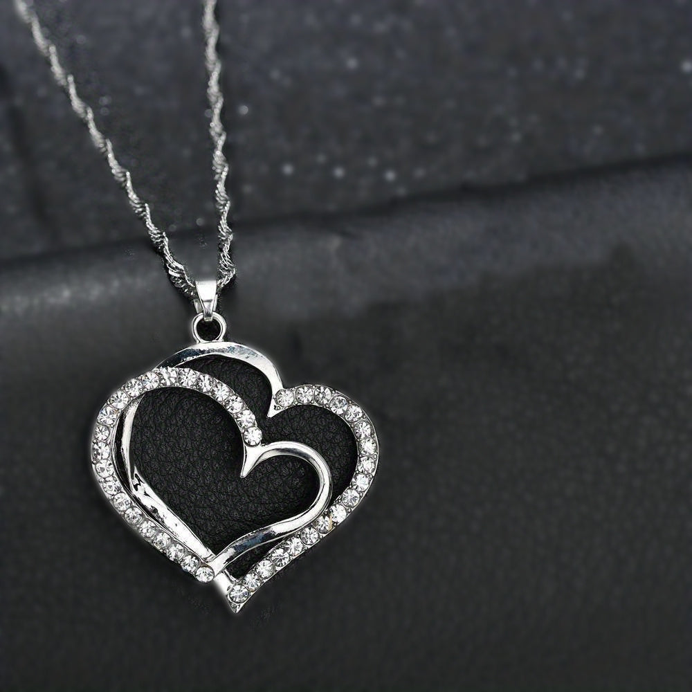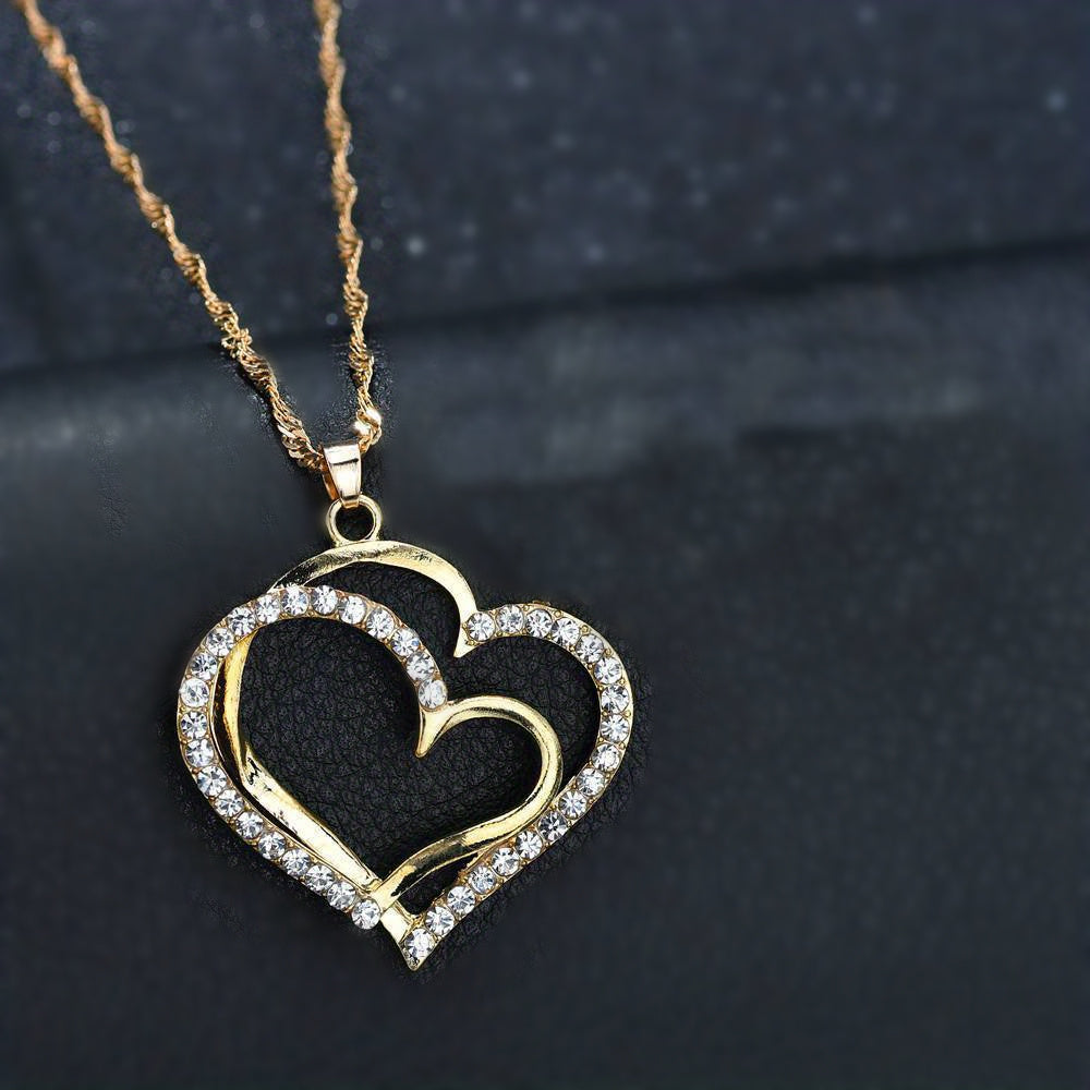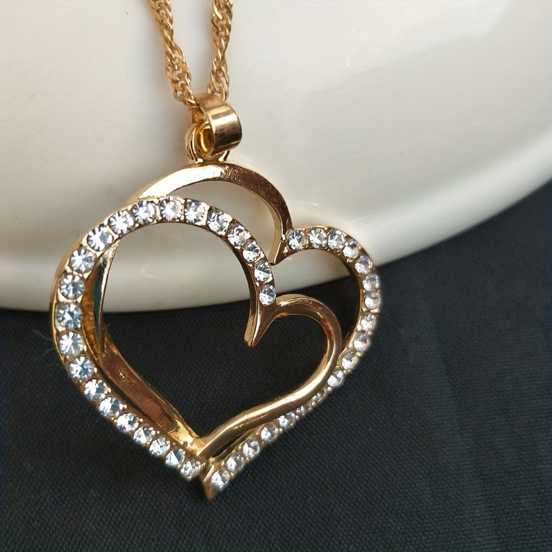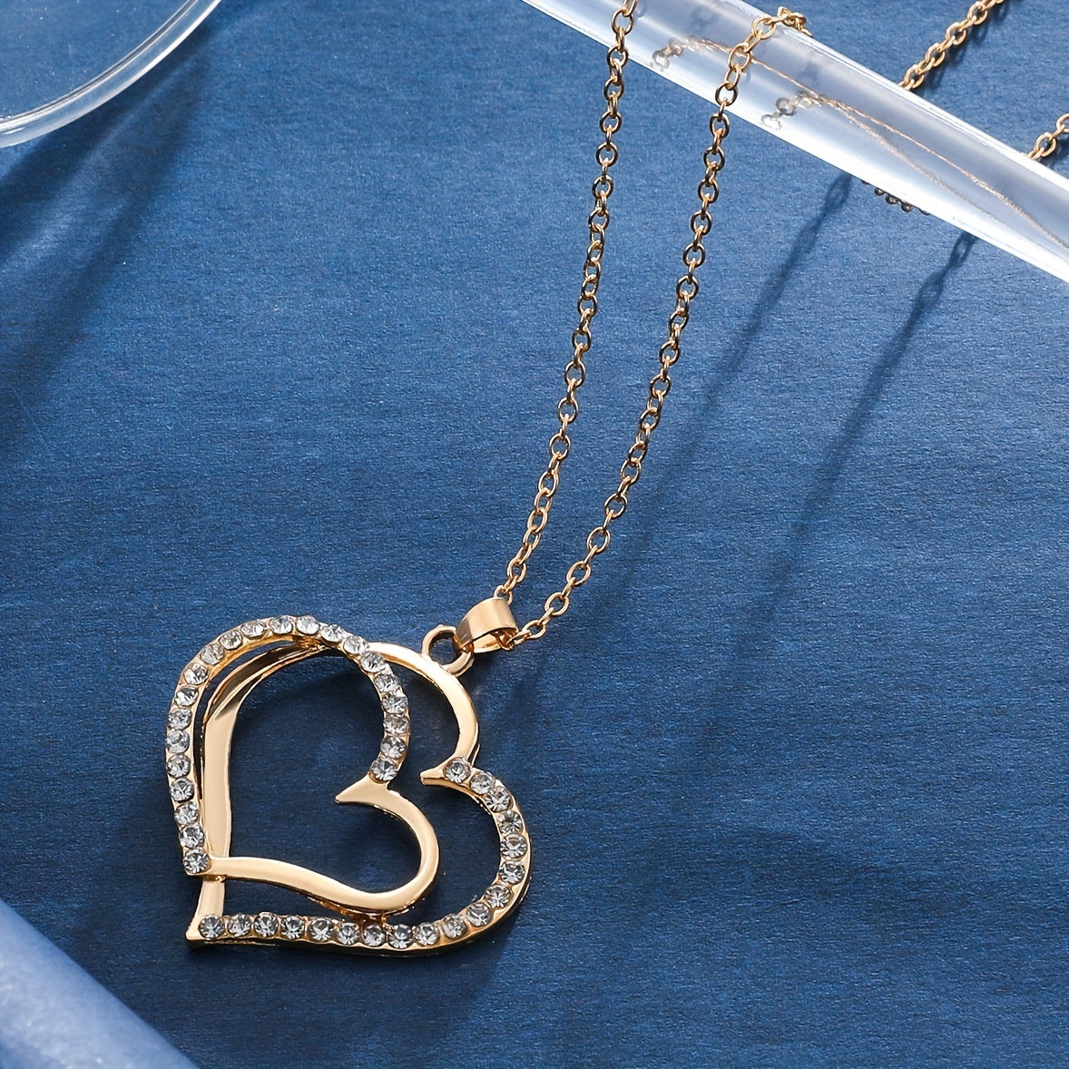 This stunning necklace features double hollow love hearts inlaid with sparkling zircon stones, perfect for a romantic and elegant look.