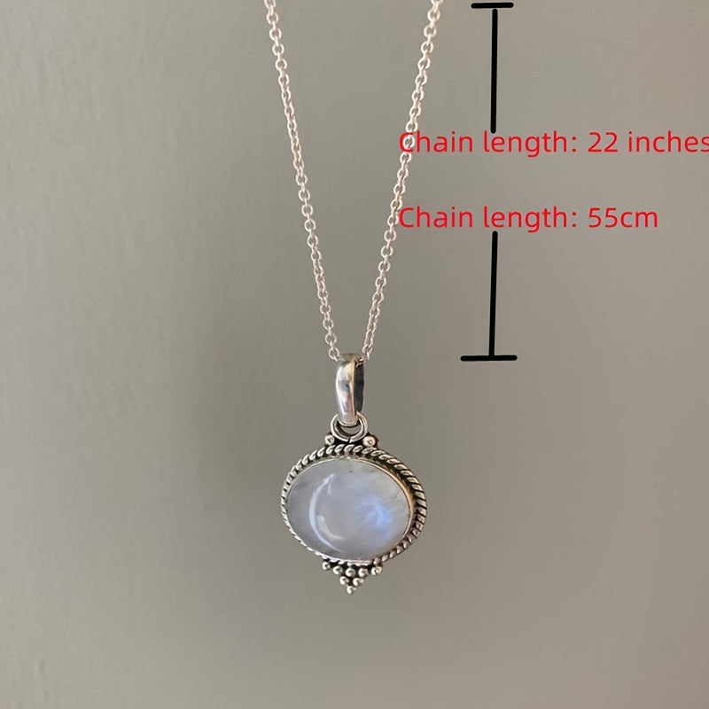 Add a touch of vintage charm to your outfit with this round stone pendant necklace. The pendant is made of silver plated metal and features a beautiful stone in the center.