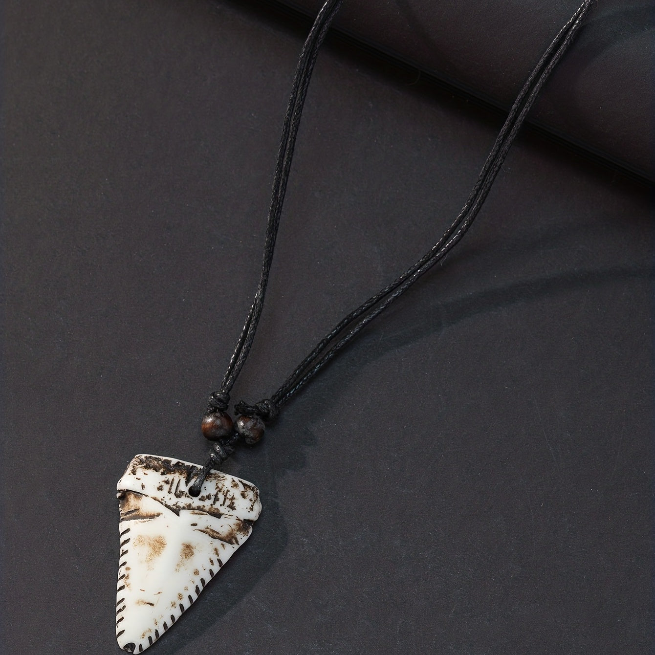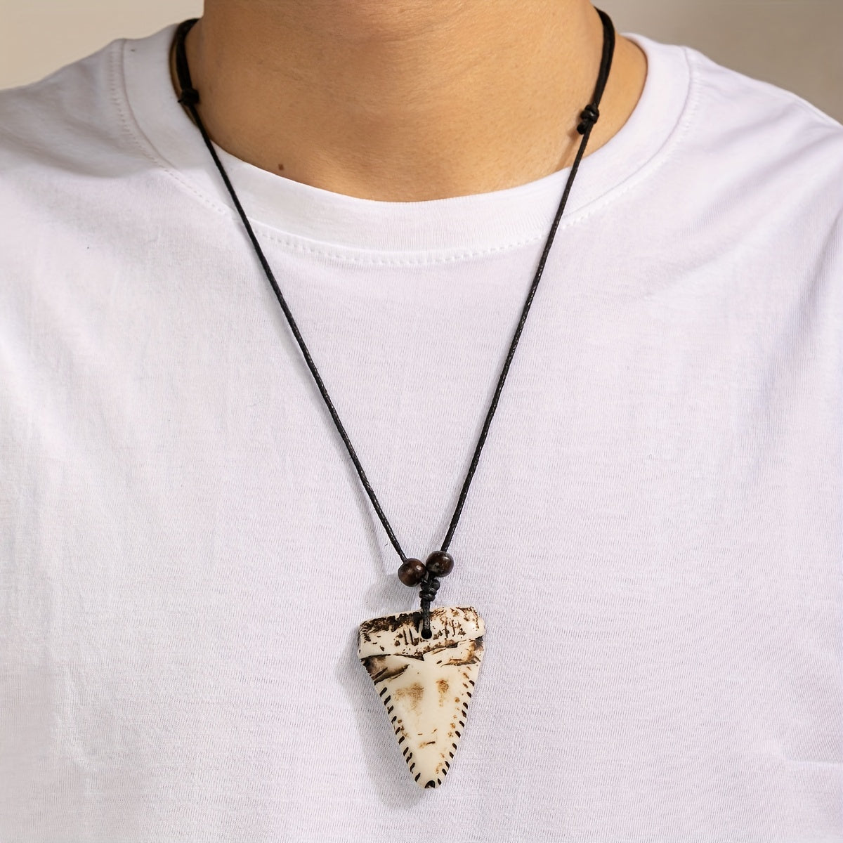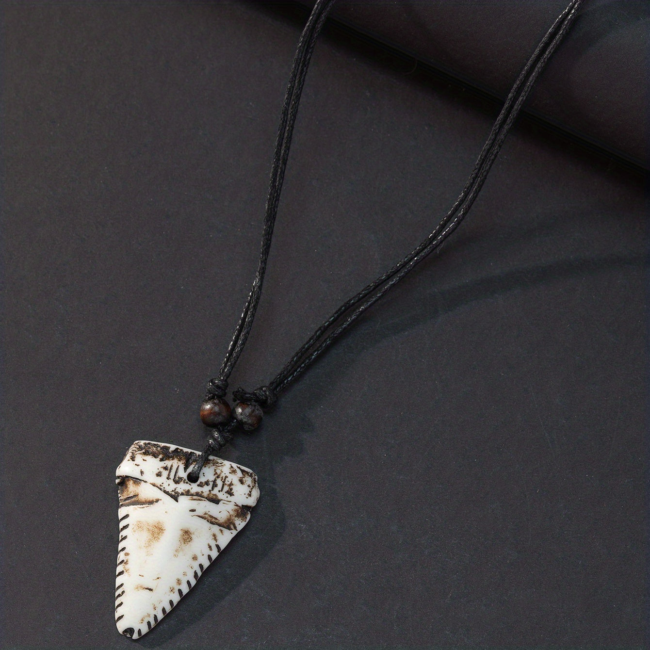 This men's necklace features a big shark teeth pendant on a retractable braided chain, exuding a vintage charm.